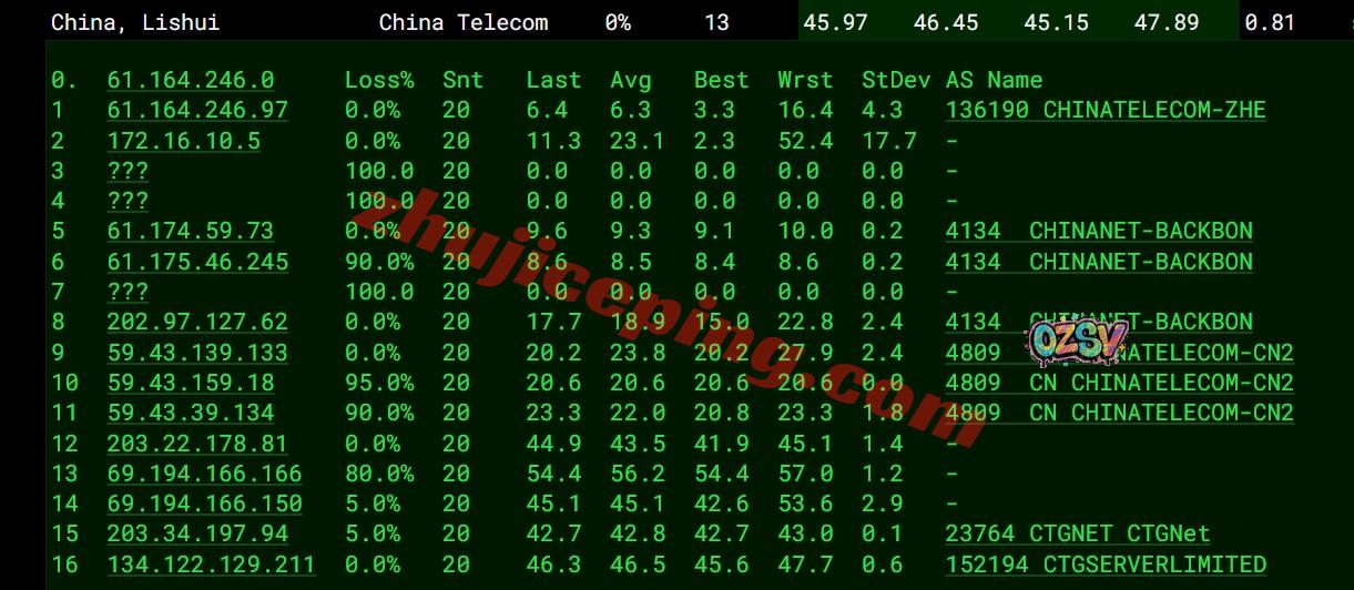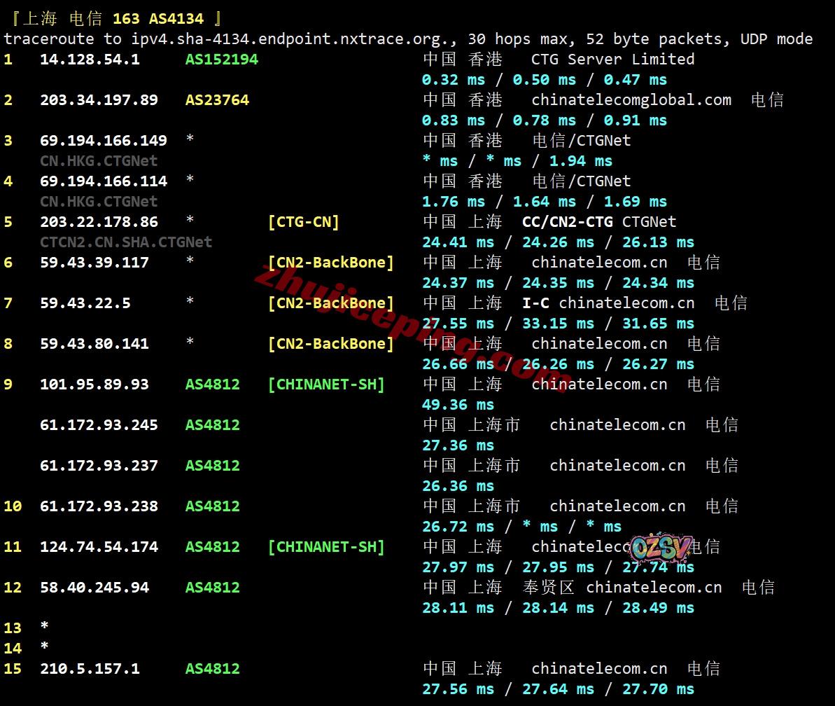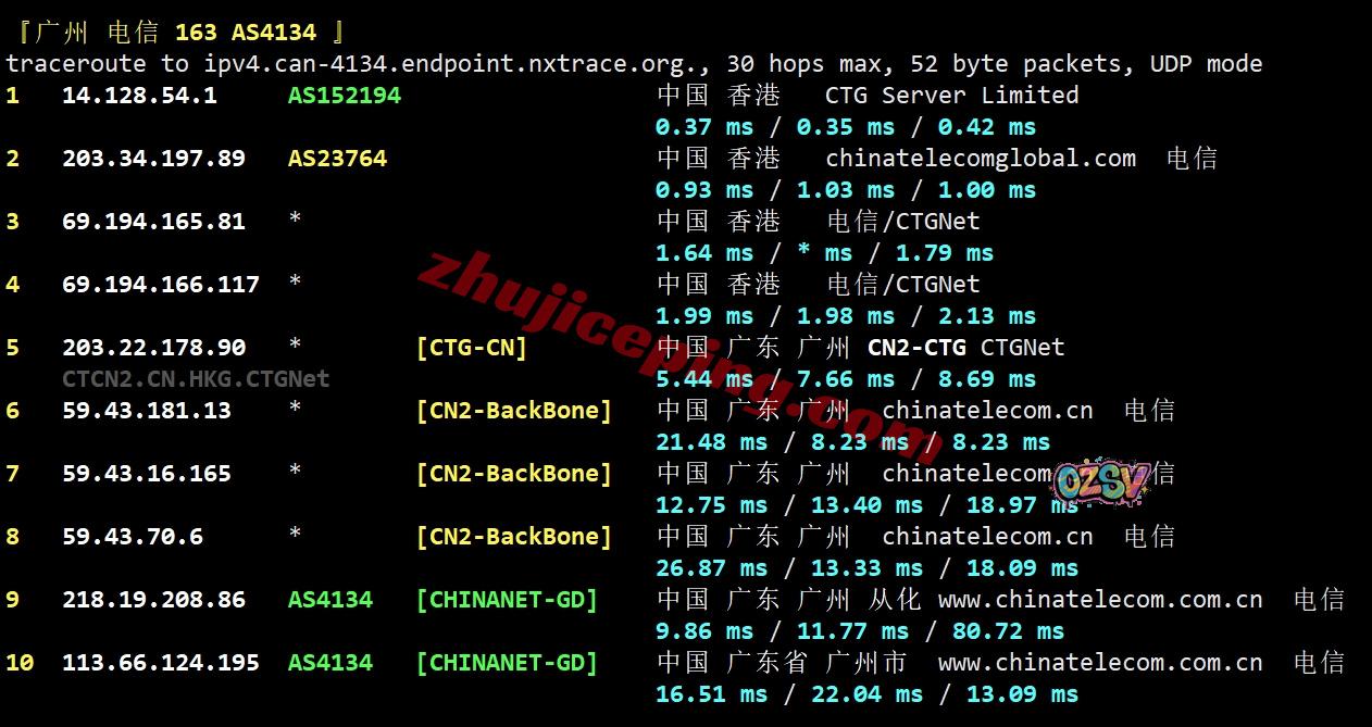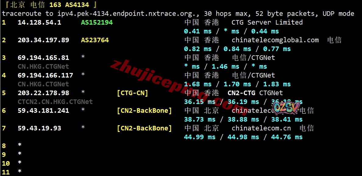 电信回程:走CTG/CN2线路回内地