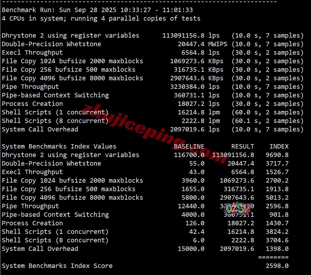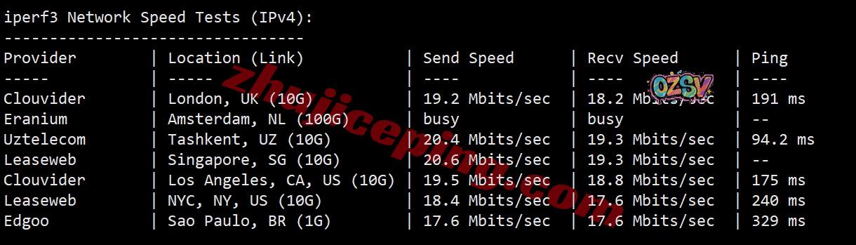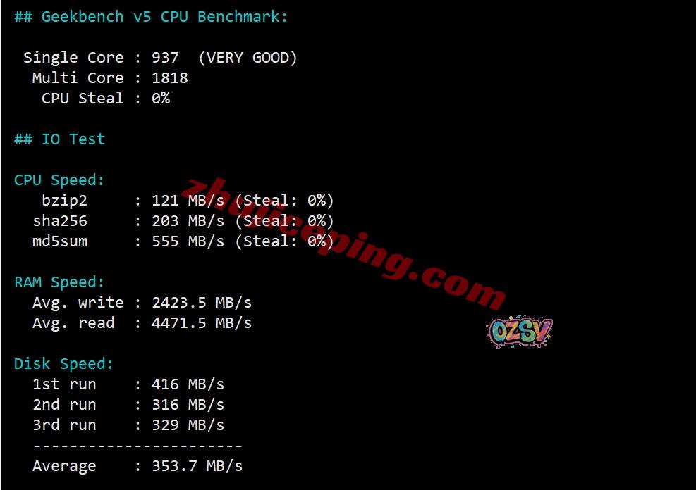 VPS性能测试,部分跑分数据如下所示:
