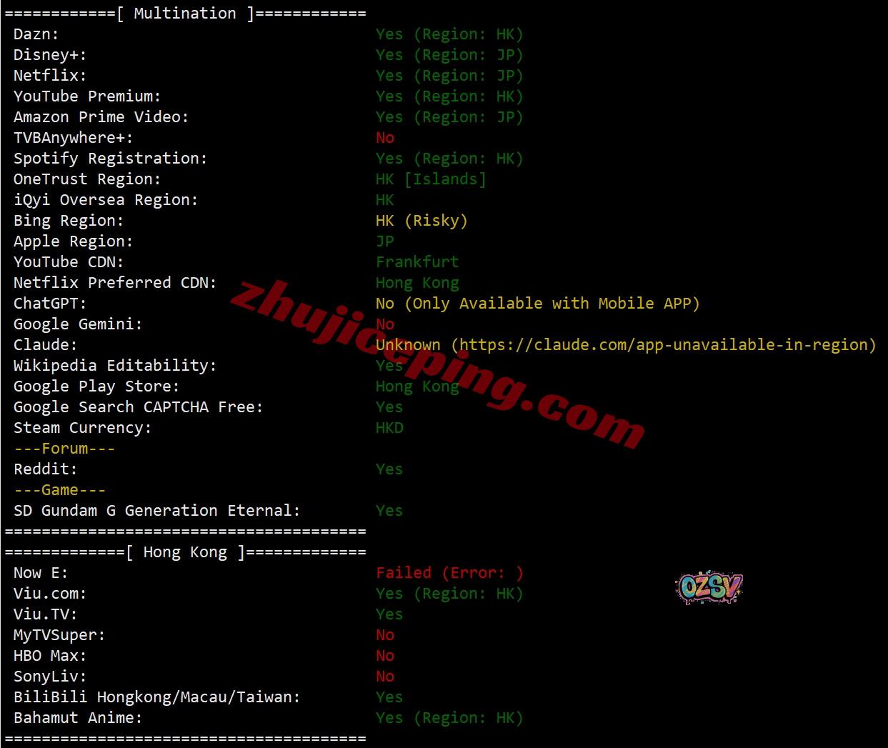 部分流媒体解锁测试的大致结果: