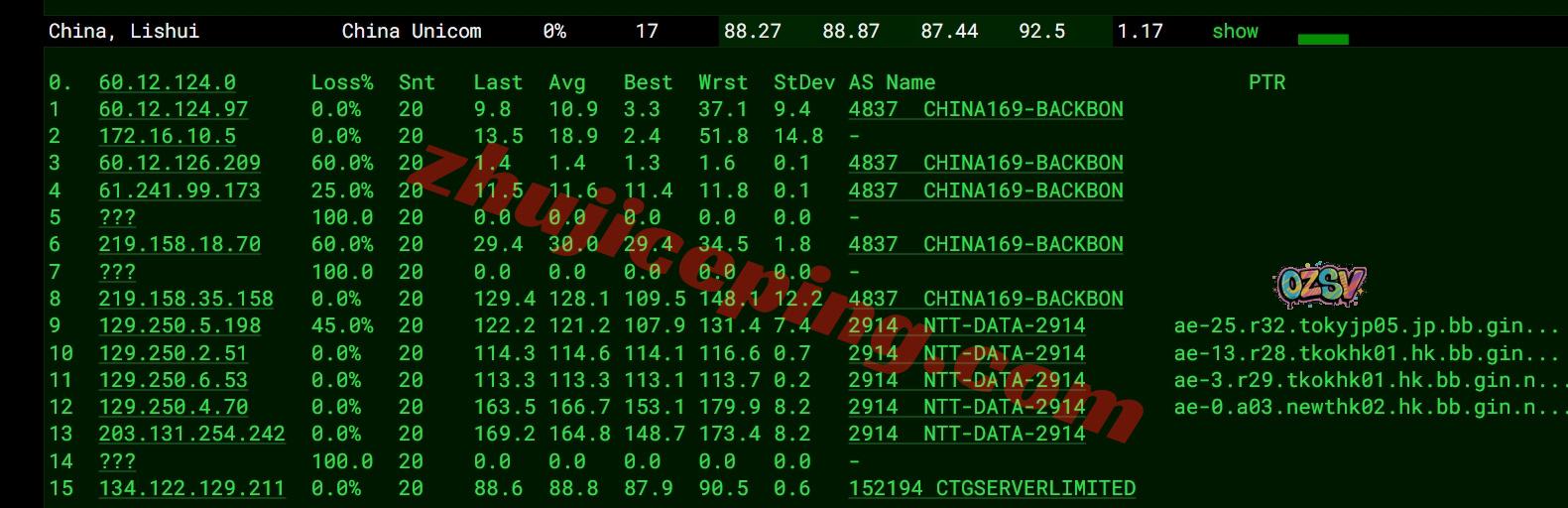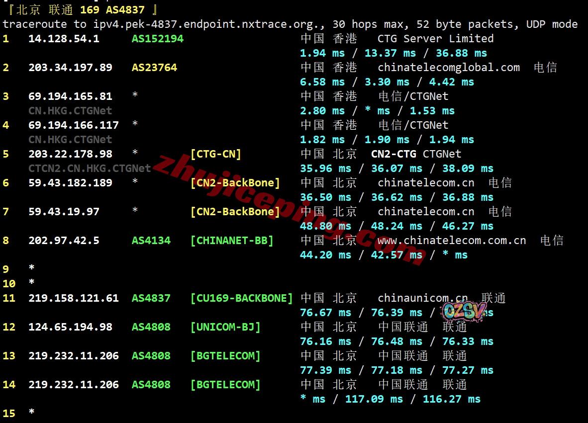 联通回程:强制走电信CTG/CN2线路回内地后再接联通