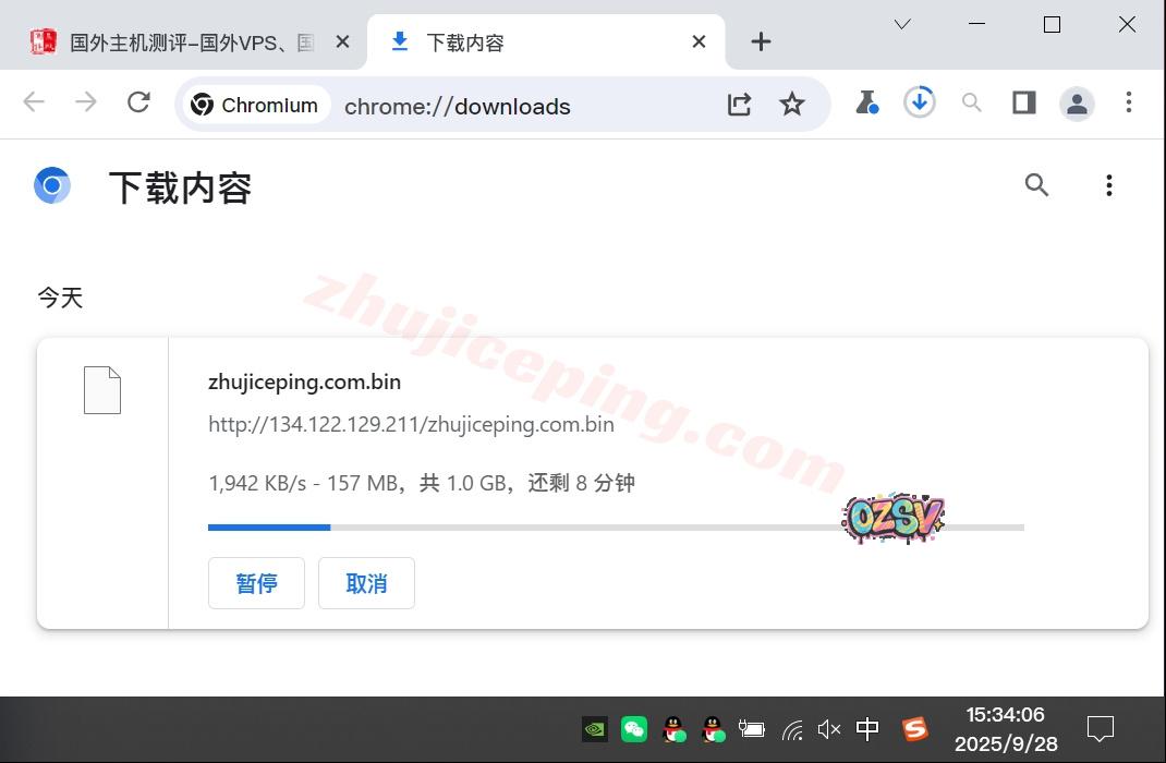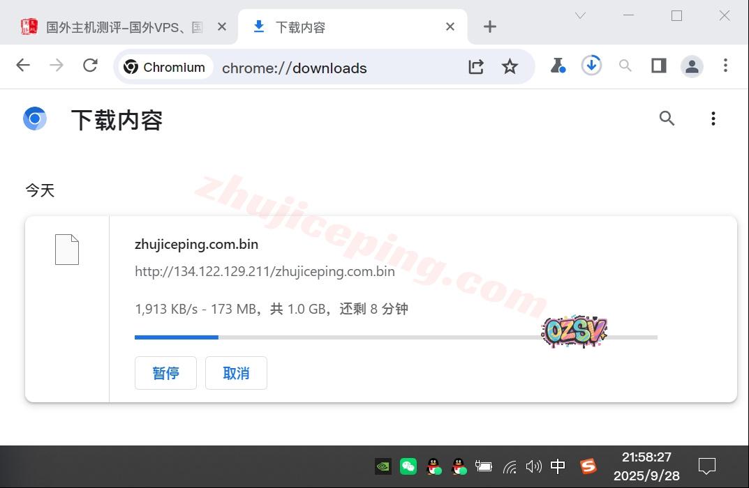 站长广州联通家宽用Chrome直接下载存放在测试VPS上的文件,下载速度如下所示(VPS默认20Mbps带宽):