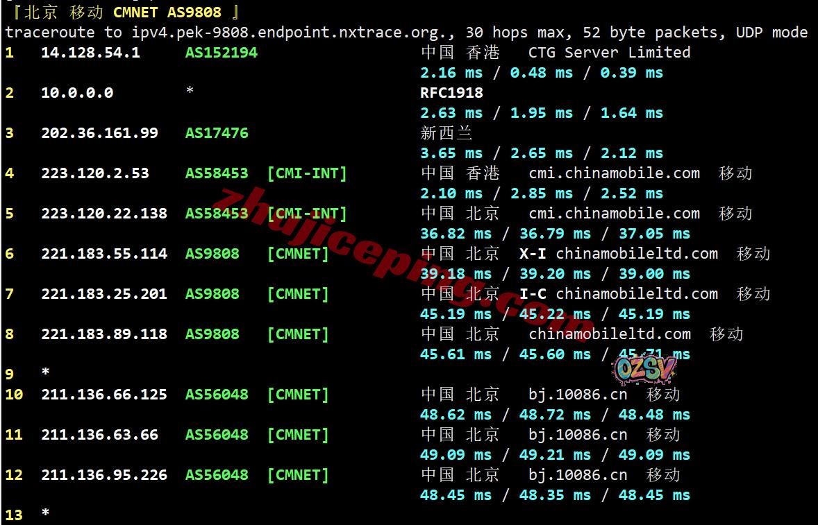 三网回程:电信和联通都是走的CTG/CN2链路回内地,移动走自己的CMI链路回内地;