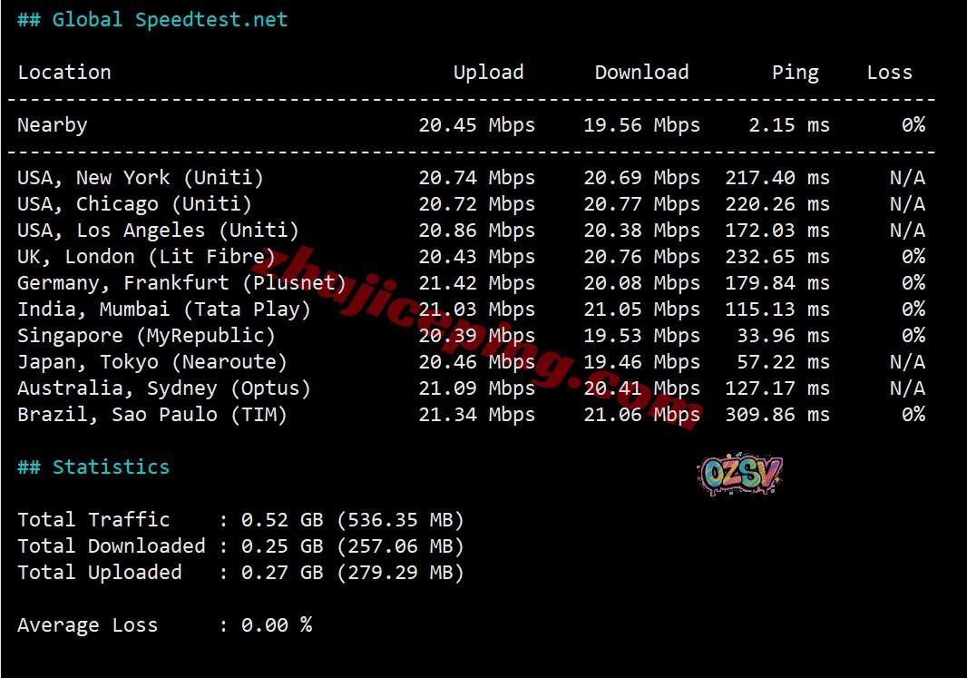 SpeedTest.Net的部分国际节点的带宽上下行测试数据: