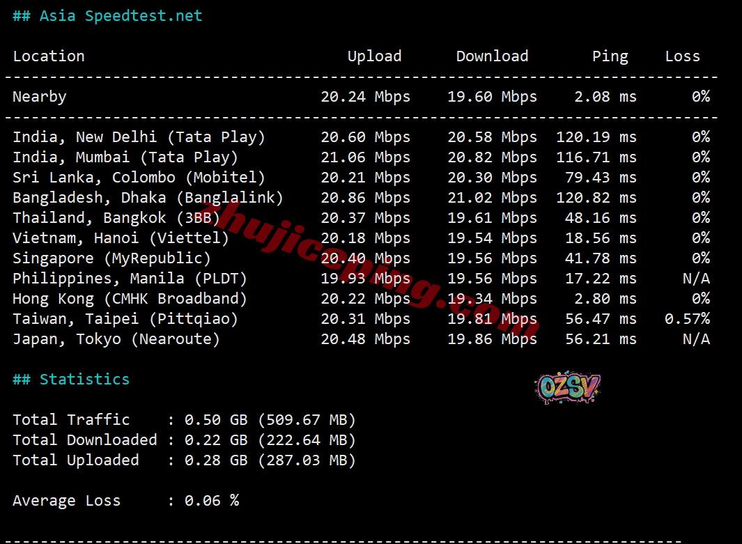 SpeedTest.Net的部分亚洲节点的带宽上下行测试数据: