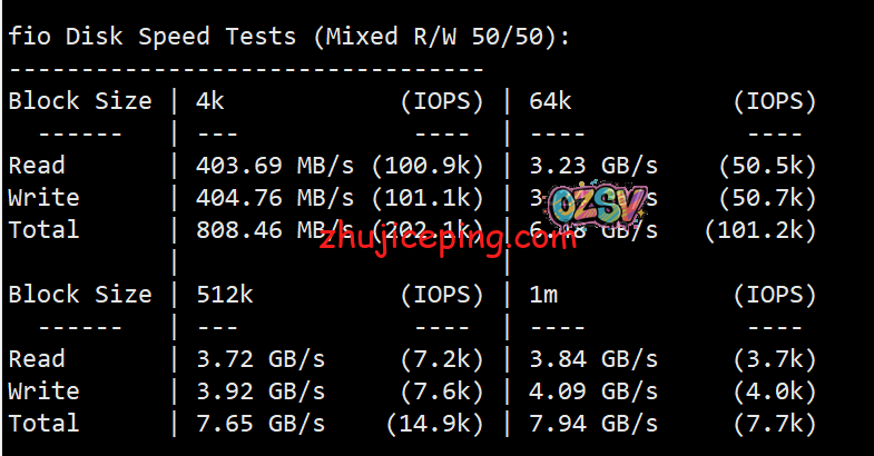 FIO有关硬盘读写的详细测试数据如下,也是屌炸天的结果: