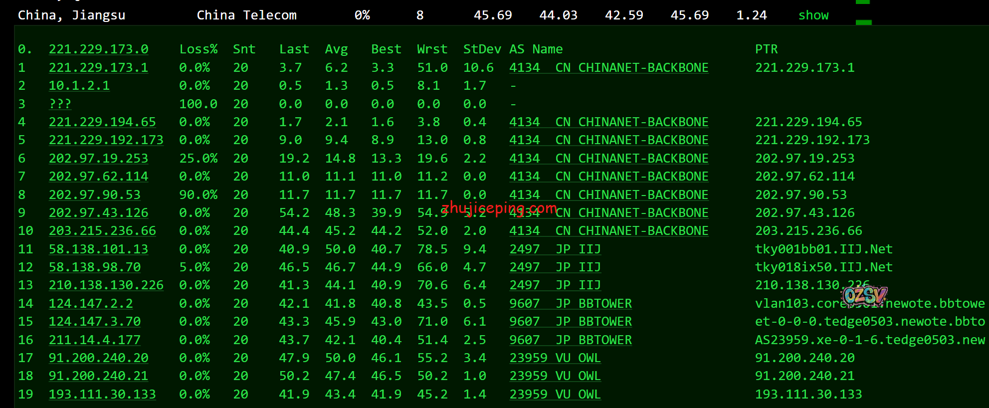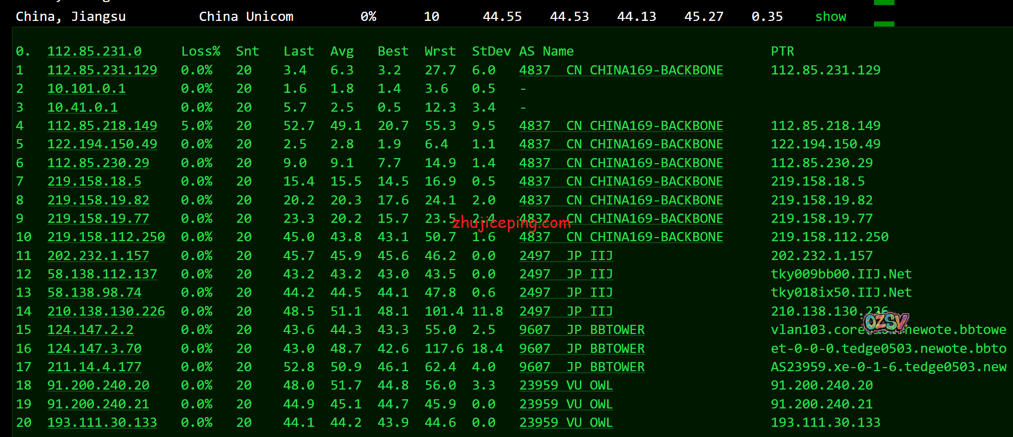 回程,到国内联通:日本机房到美国圣何塞或者洛杉矶,然后AS4837回来