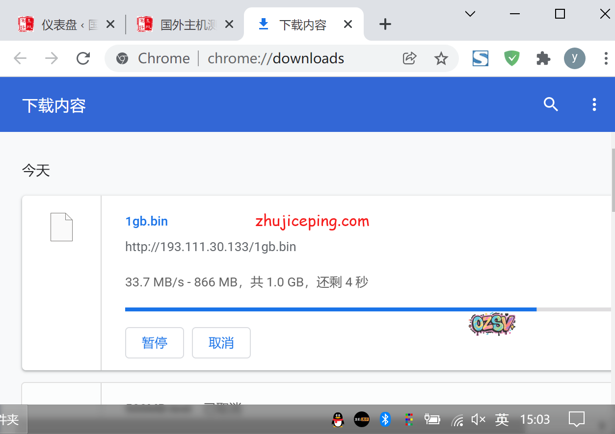 存放在测试VPS上面的文件,广州电信白天的下载速度: