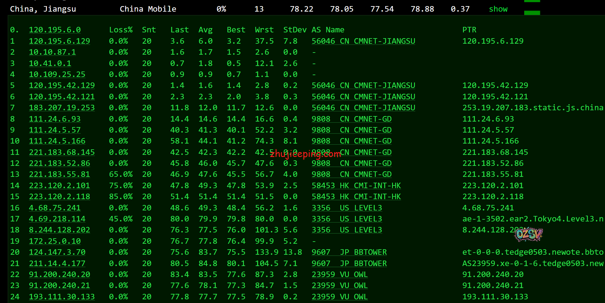 移动去程,CMI网络对接level3直连日本bbtower机房(没有绕道,看清楚点):
