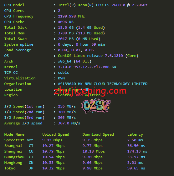 测试机器为官方销售的18元同款机器:点击查看,香港Ceranetwork 数据中心 , CN2+CMI 混合BGP,针对大陆优化,高性能E5处理器!DDOS空路由时间为2小时 本区如机房遭受攻击会部分线路绕美国清洗 测试站点 http://dc1.hk.server.idc.ax/