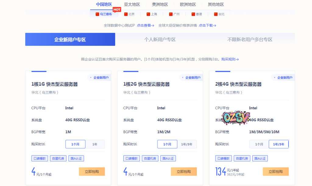 注:本活动有效期截止至12月31日,中国地区-企业新用户限购3台,个人新用户限购1台;乌兰察布共享型为CPU共享,IP独享;快杰型云服务器为UCloud旗舰产品,性能优秀,非老机型,产品最低可月付试用,长期使用选择更长的周期更划算。