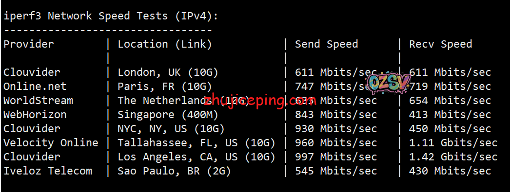 iperf3针对欧美节点的测试,效果如下: