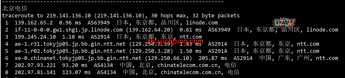 电信去程,骨干网后走NTT: