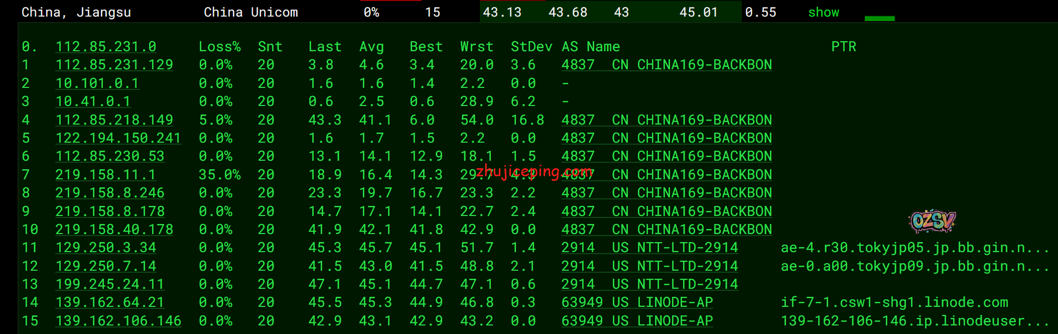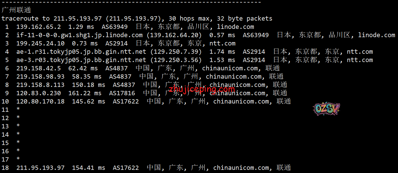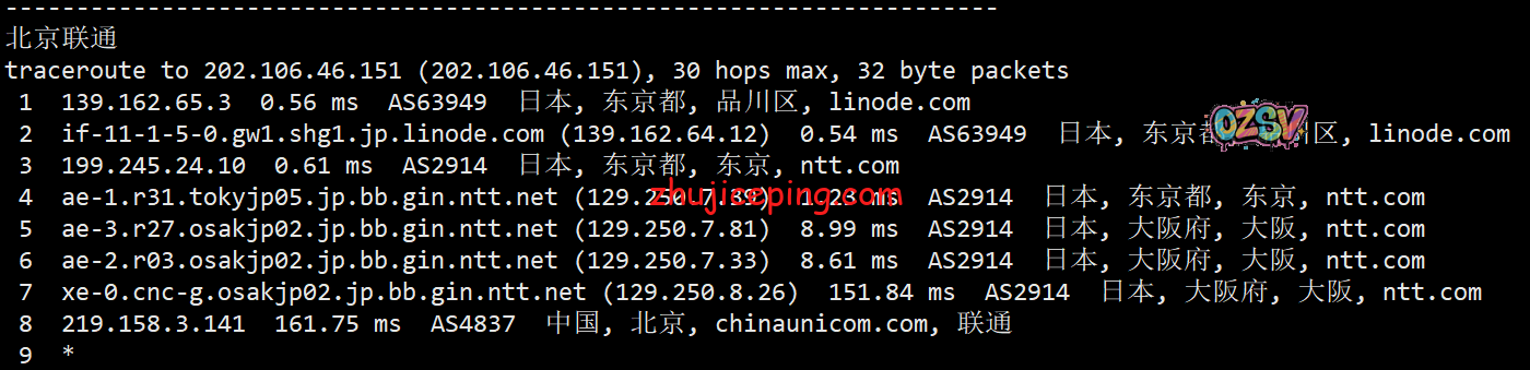 联通去程,骨干网后也是NTT: