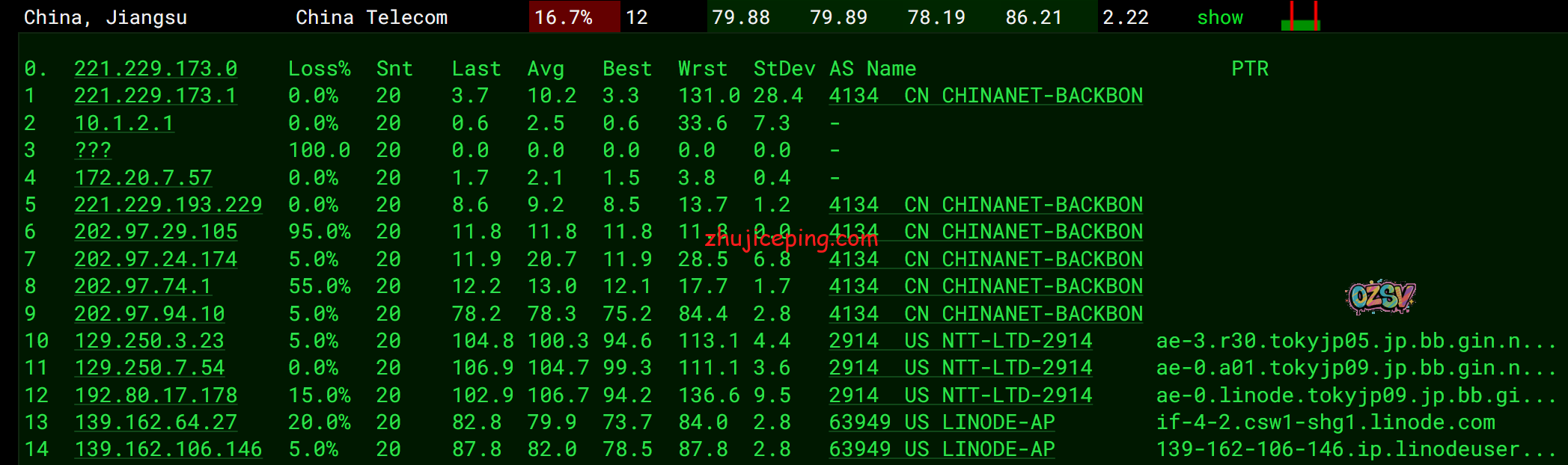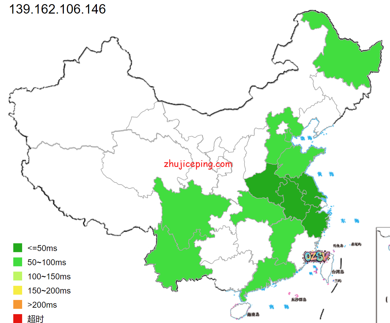 全球168个节点的延迟监测: