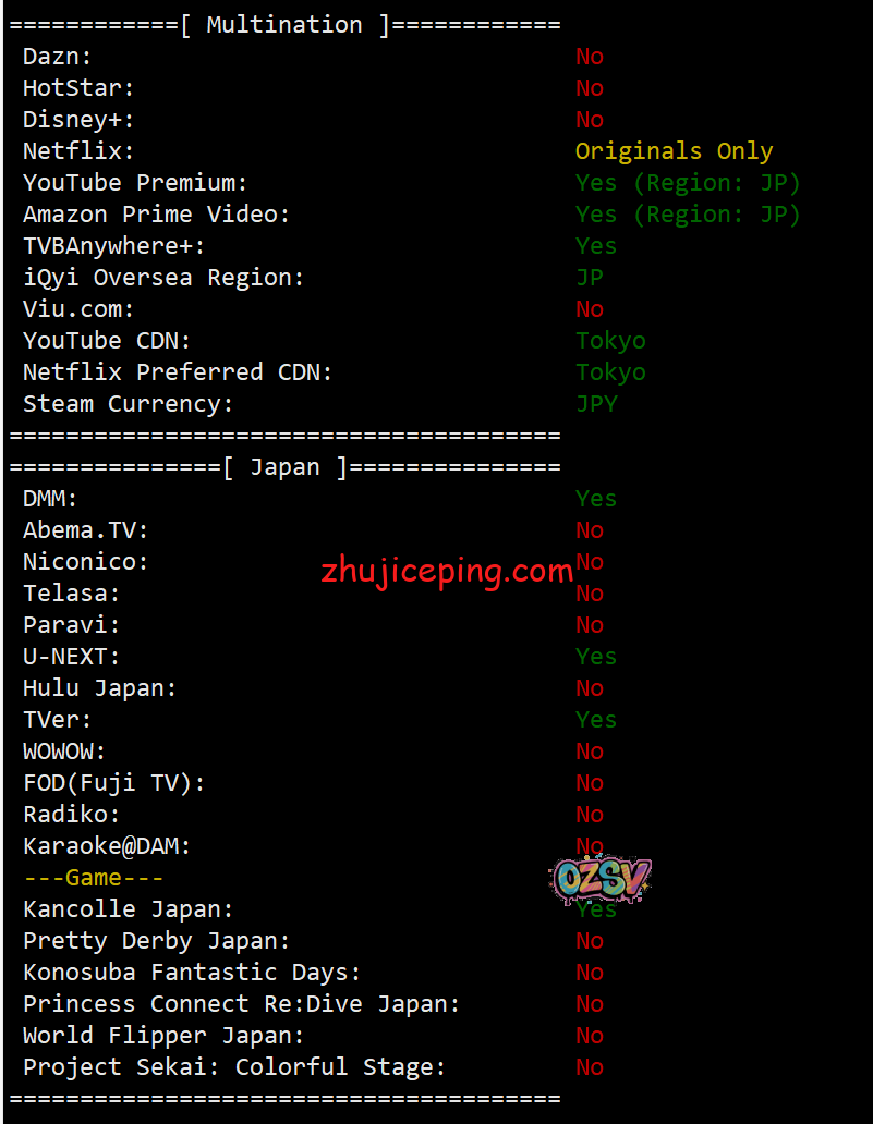 流媒体测试大致结果如下,不保证绝对是这样的,由于是IDC类IP,还有不同段,大家大致看看就好: