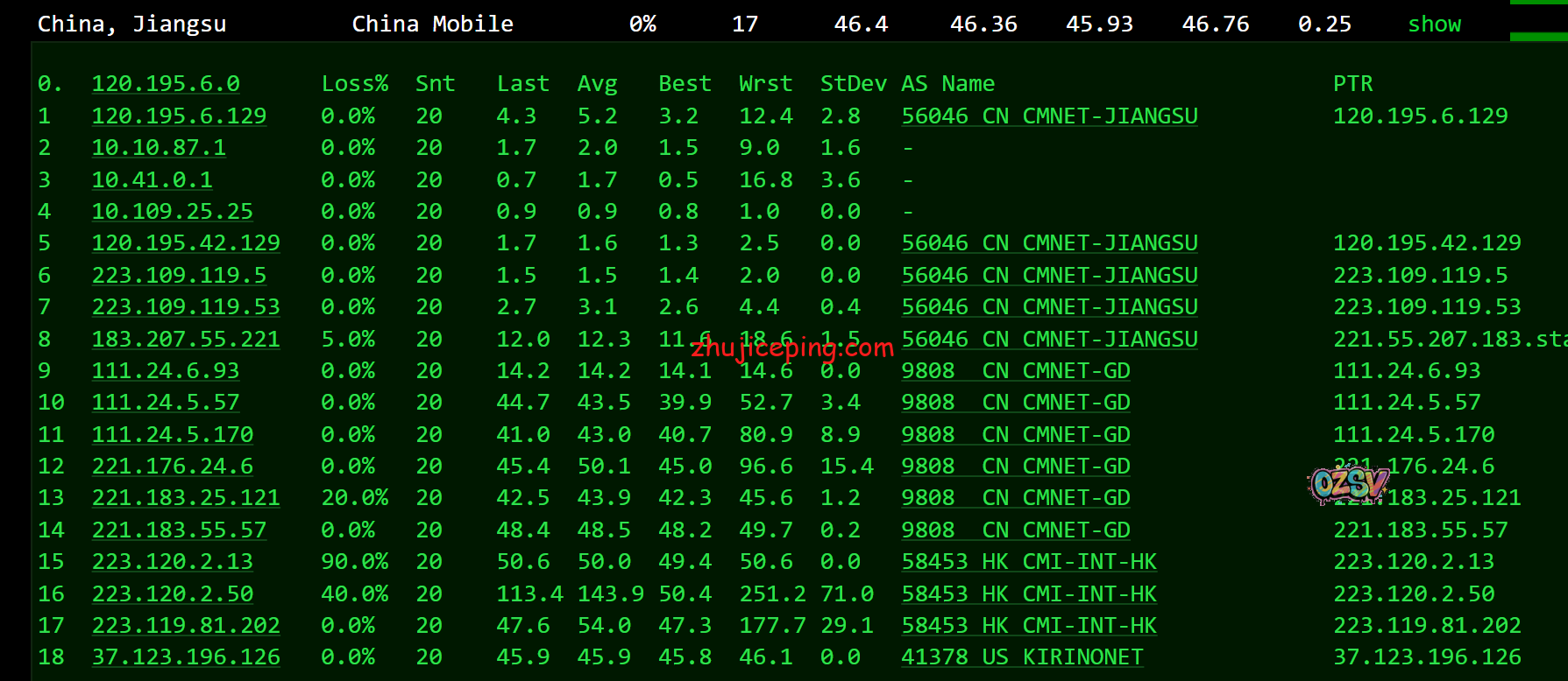 虽然电信和联通去程走的是NTT绕道了下日本,移动是CMI直连;