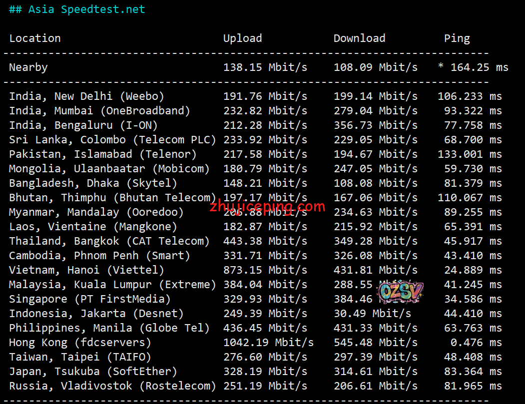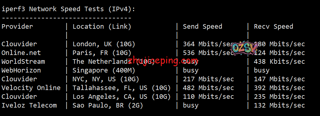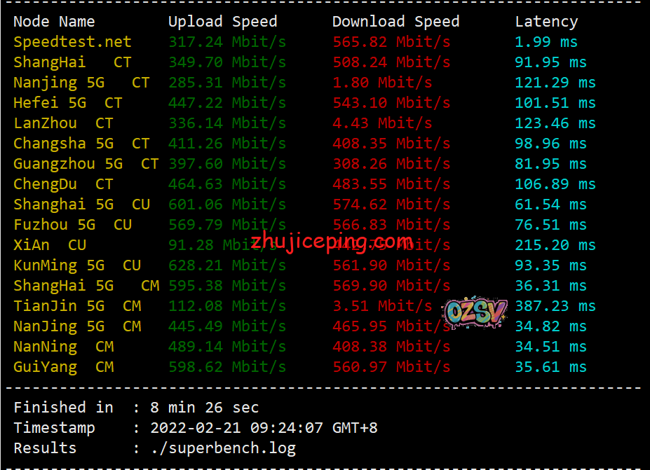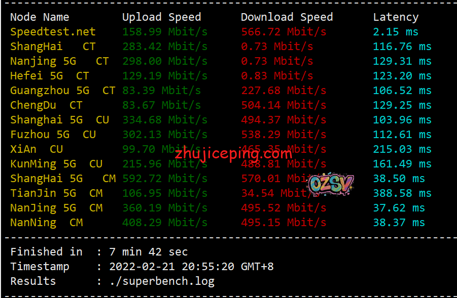 VPS速度上效果好不好,在内地带宽能跑多少是核心。我们这里用speedtest.net的国内三网节点做个简单的测试,大家重点关注upload speed: