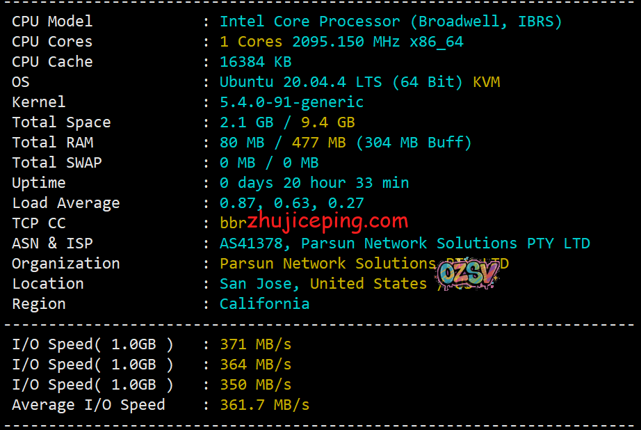 拿到了个最低配的VPS,主频2.1GHz,硬盘I/O大致360MB/S,顺手开启BBR:
