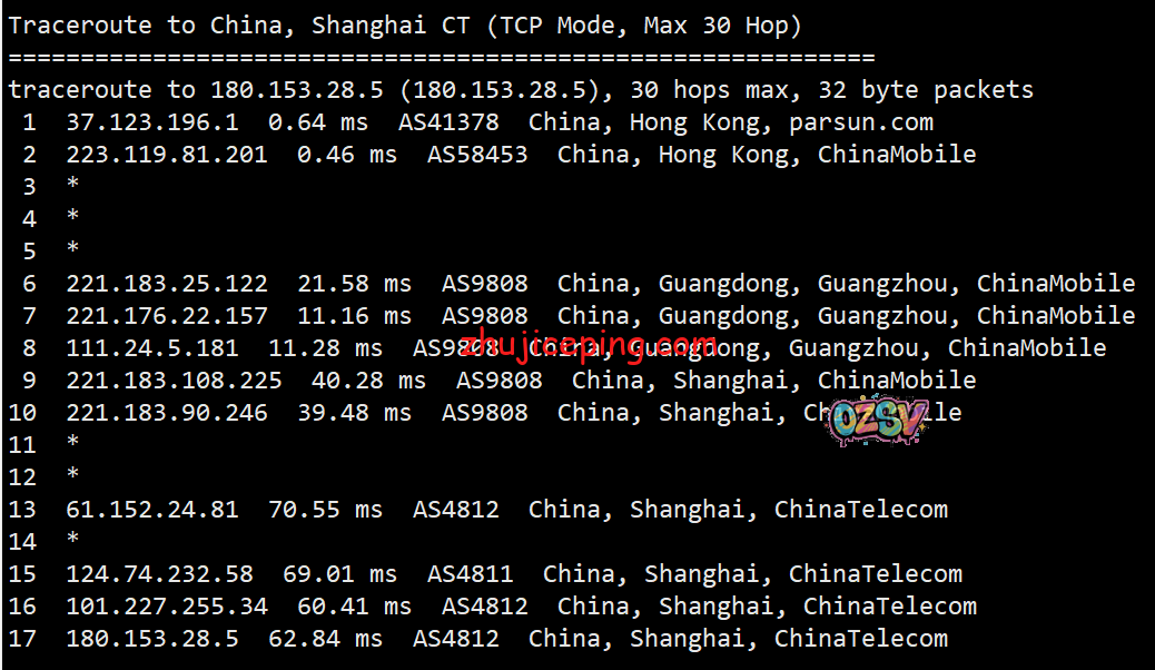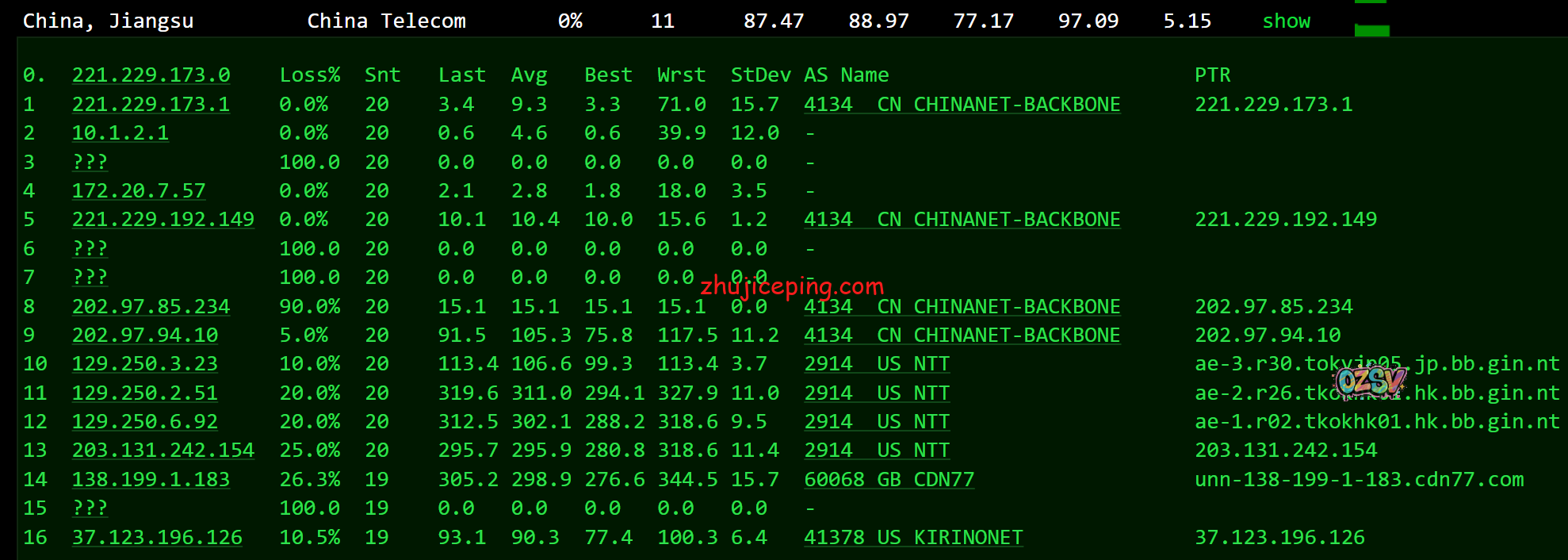 电信去程,骨干网对接NTT绕道了日本回香港: