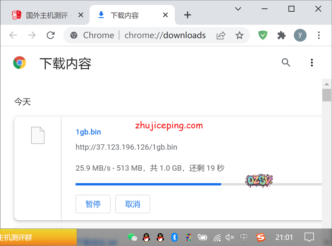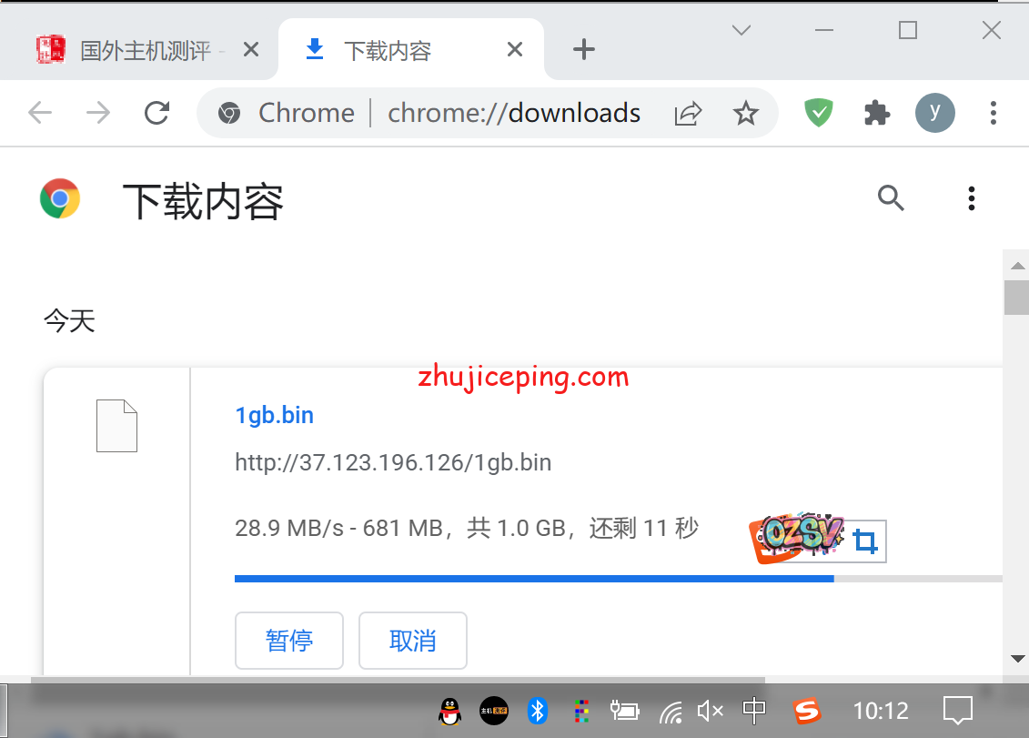 存放在测试VPS上的文件,广州电信200M带宽(25%冗余带宽),下载速度28.9MB/S,这个效果是相当给力了。本人用的是WiFi测试的!
