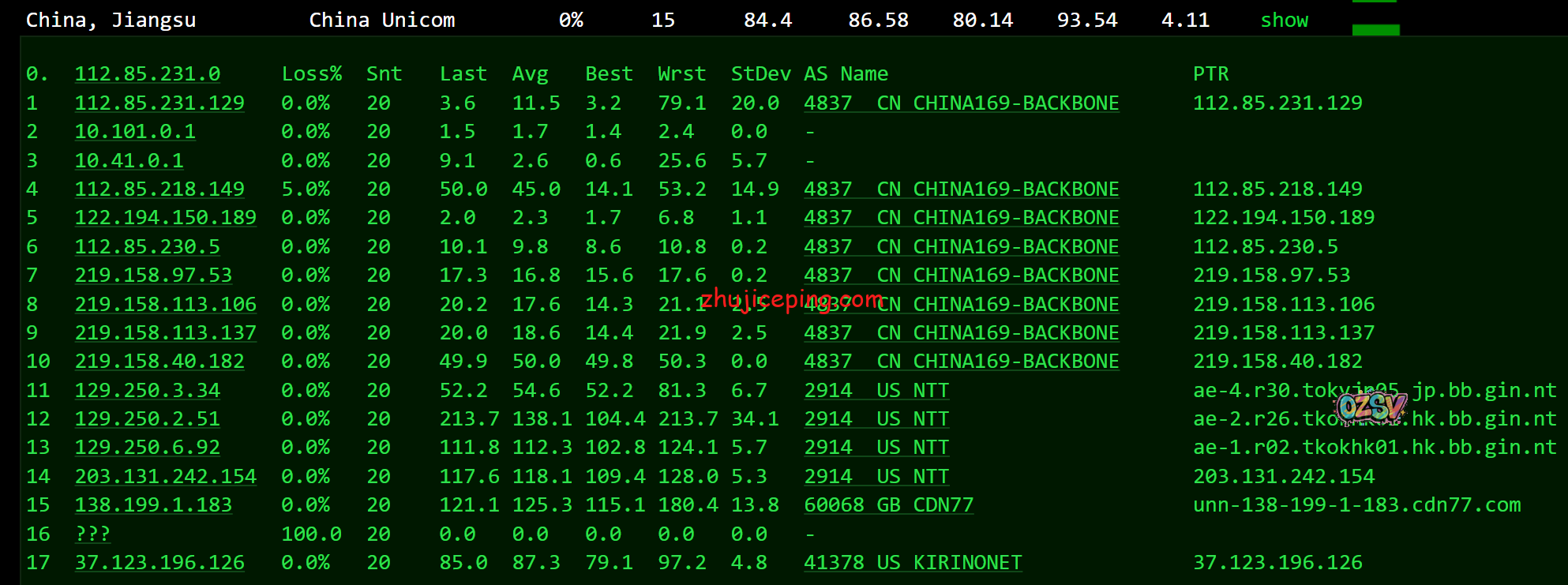 联通去程,骨干网对接NTT绕道了日本回香港: