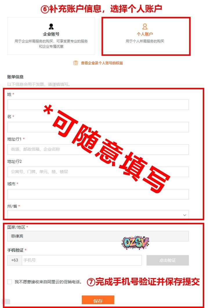 第五步:补充信息,选择个人账户,这里的内容可随意填写。