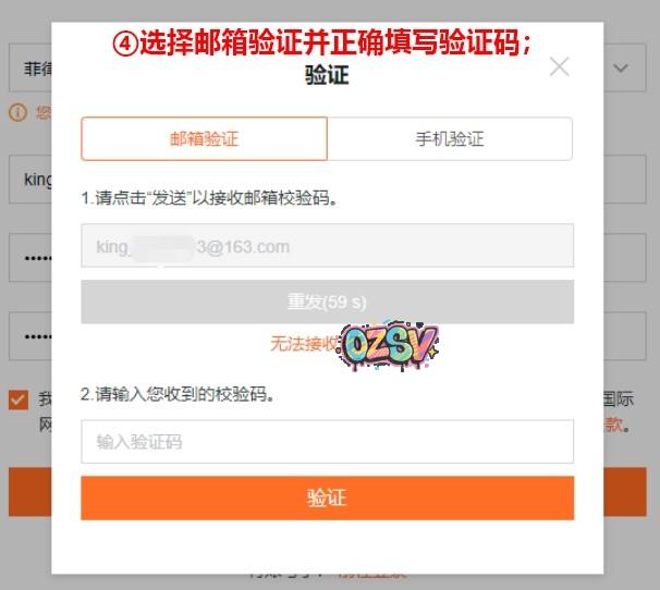 第三步:选择邮箱验证并正确填写收到的验证码。