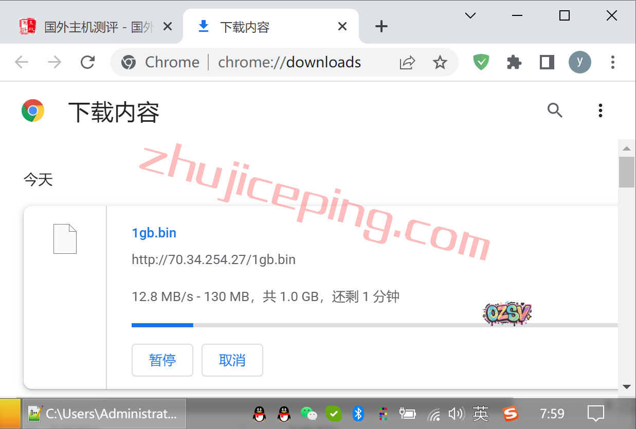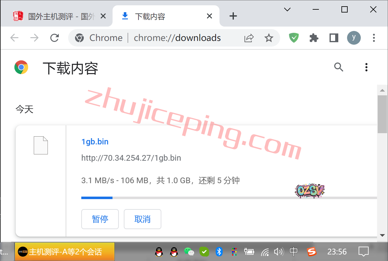 存放在测试小鸡上的文件,直接用Chrome浏览器下载,大致速度如下: