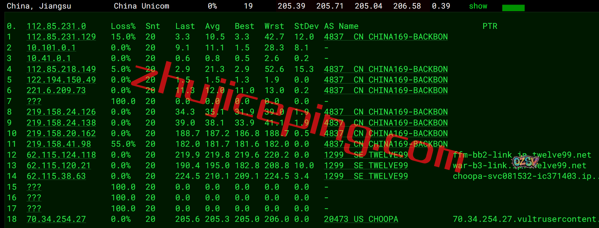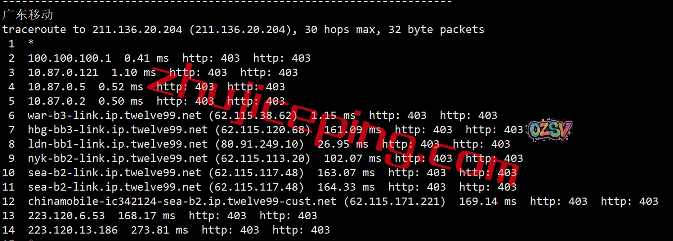广州方向:走telia到英国然后到纽约再到西雅图,从移动西雅图节点回国