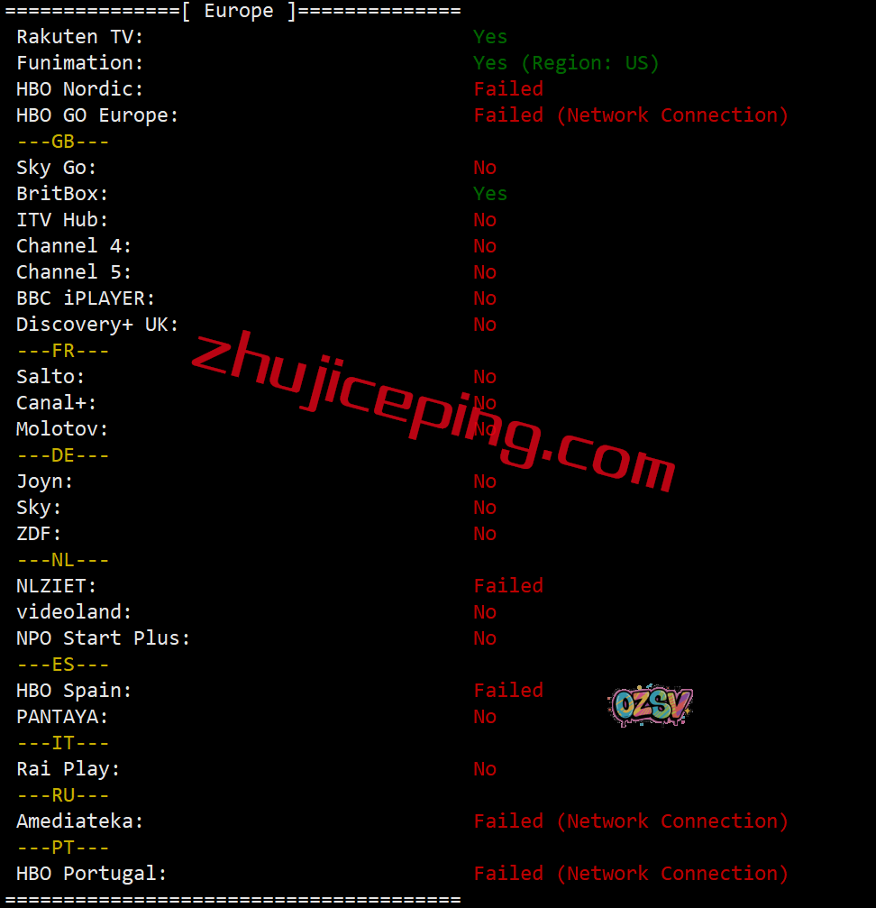 欧洲地区流媒体解锁结果: