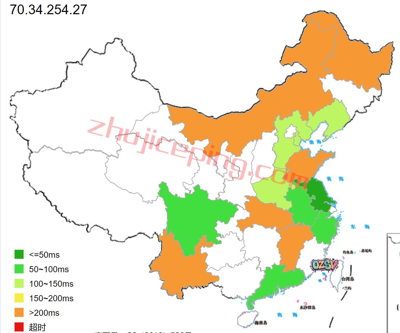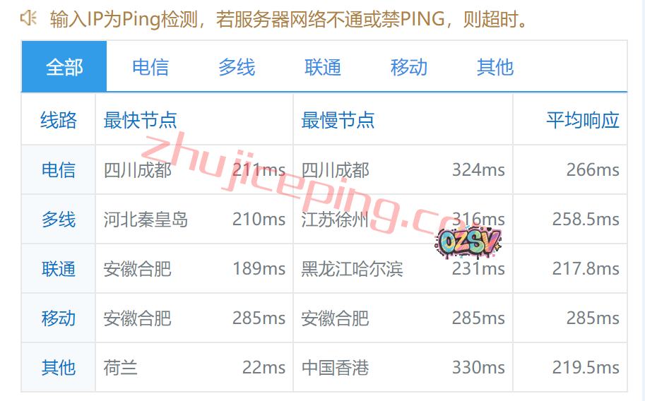 国内多个节点的延迟监测数据: