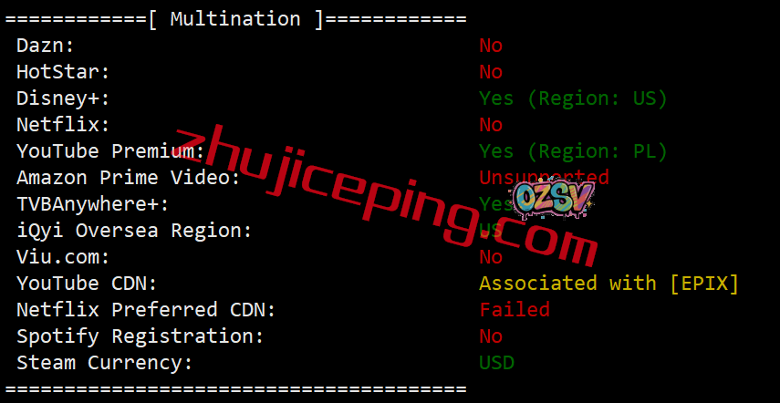 跨区域流媒体解锁测试结果: