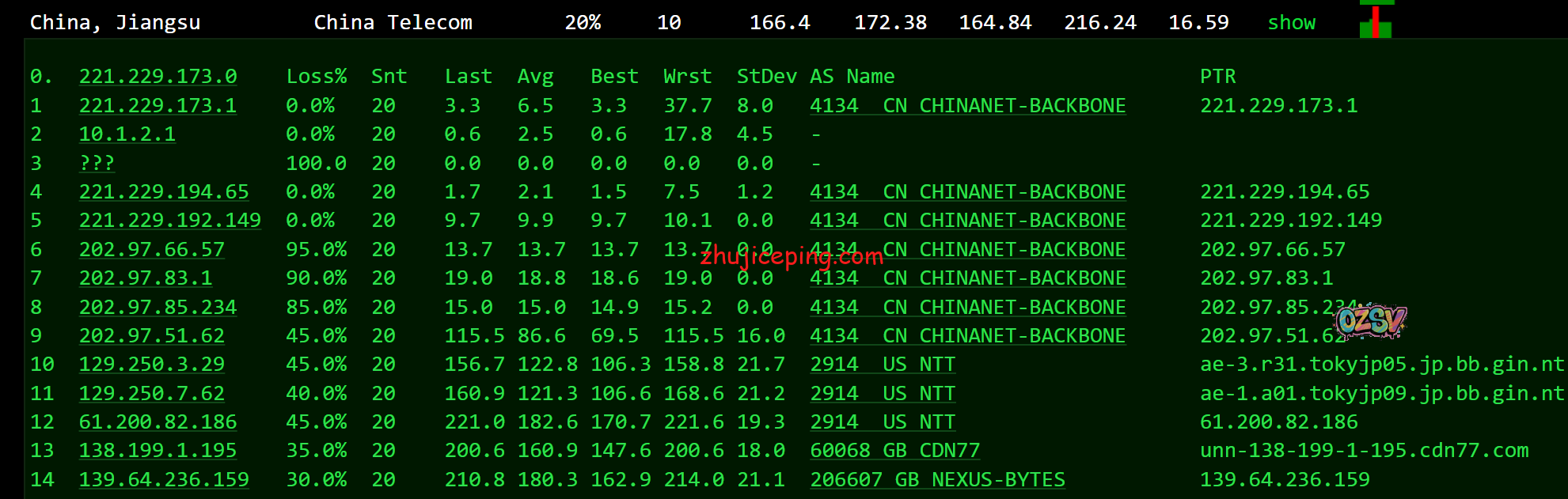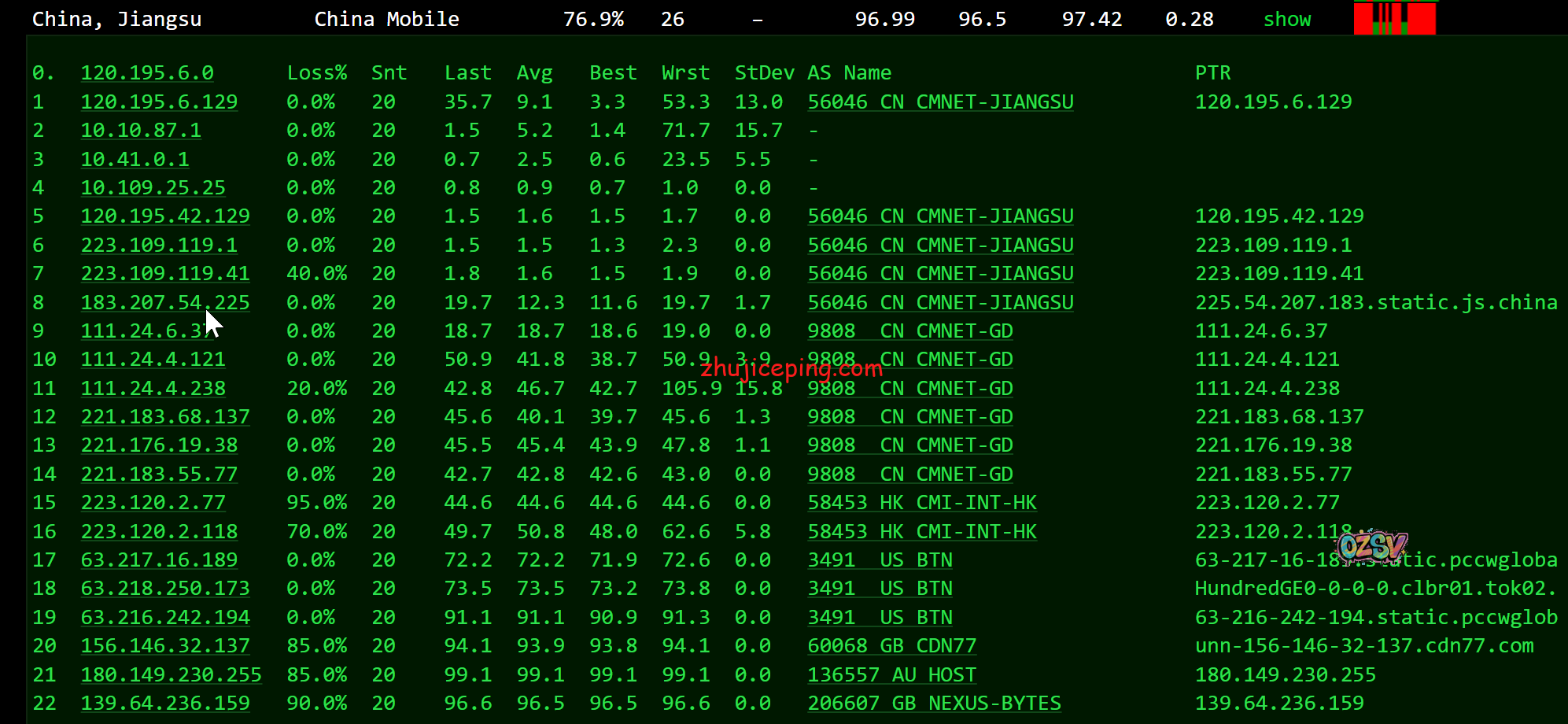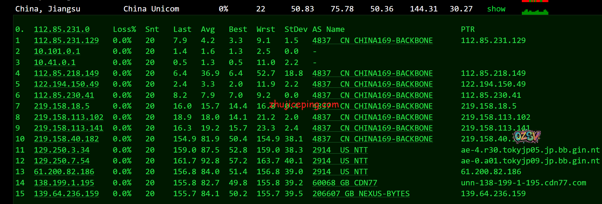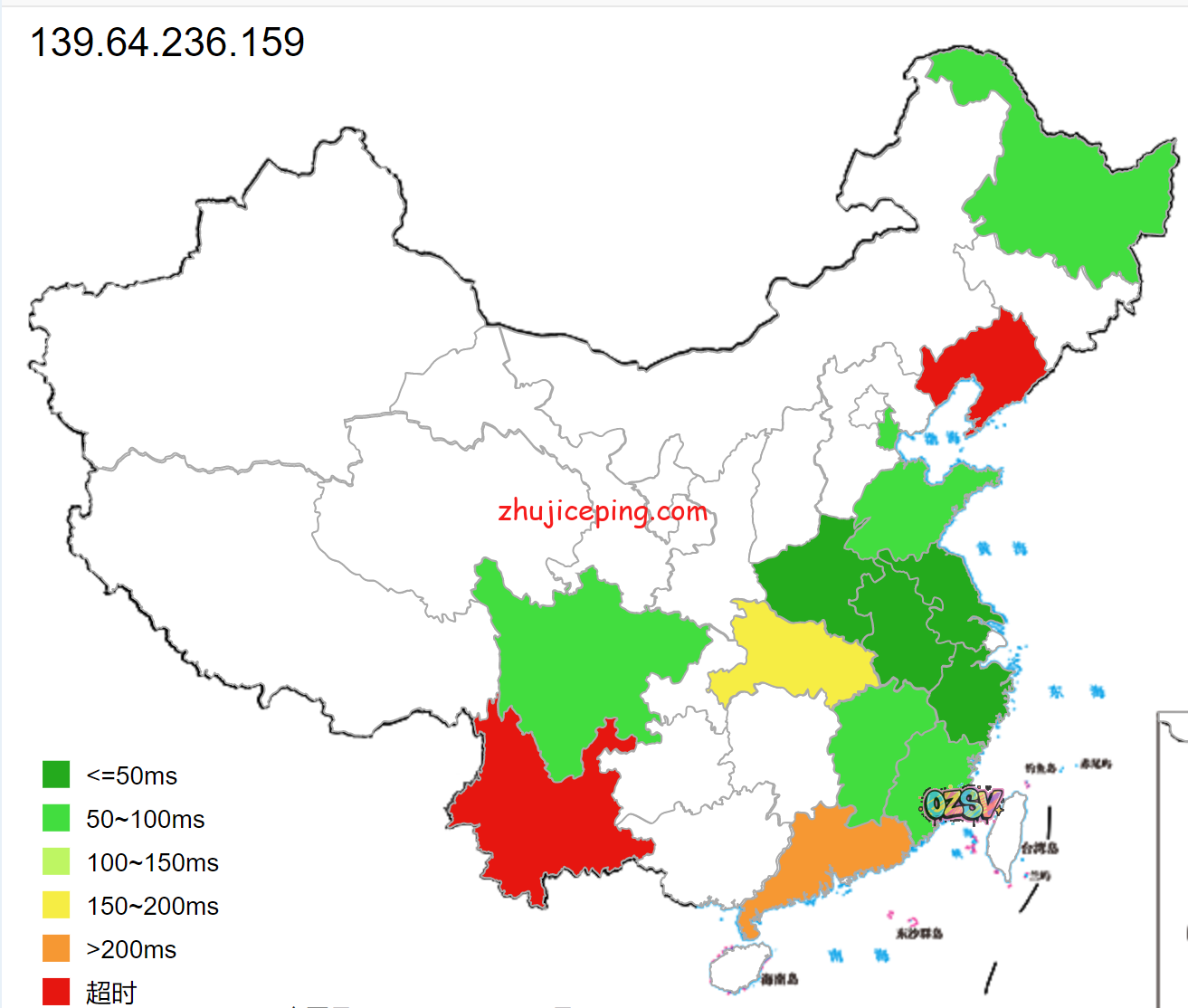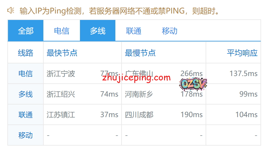 国内超过80个节点的延迟检测数据如下: