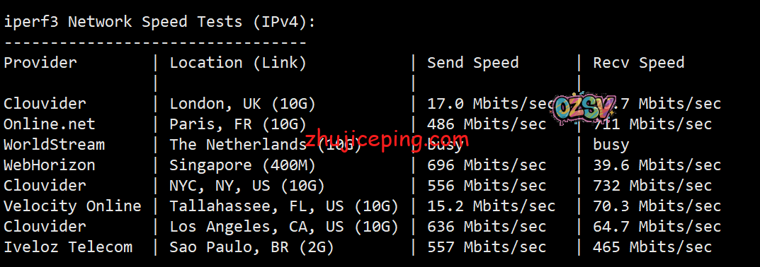 iperf3测试的是跑欧美节点的数据结果:
