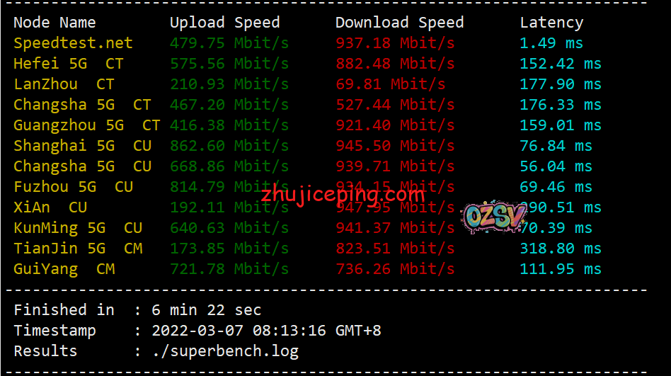默认是1Gbps带宽,在中国大陆能跑到多少是个未知数啊,我们用speedtest.net在国内的三网不同节点做个简单的测试,看看上行和下行带宽可跑多少: