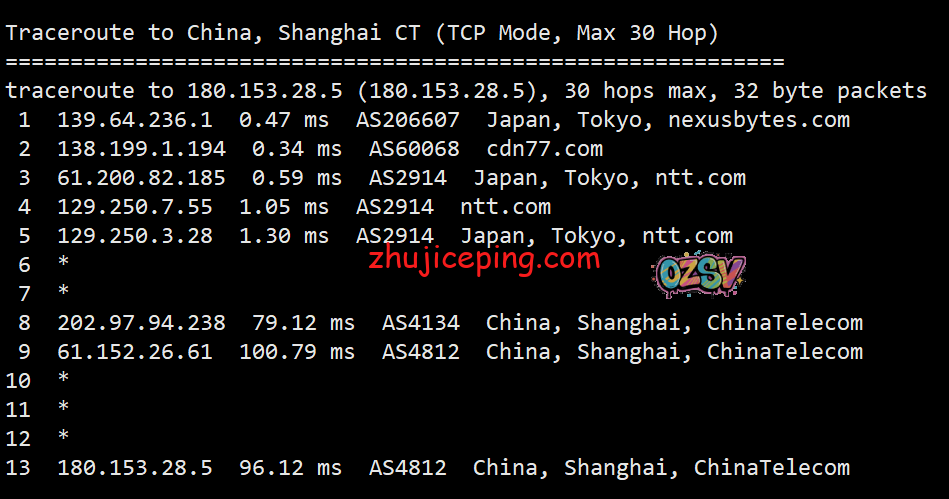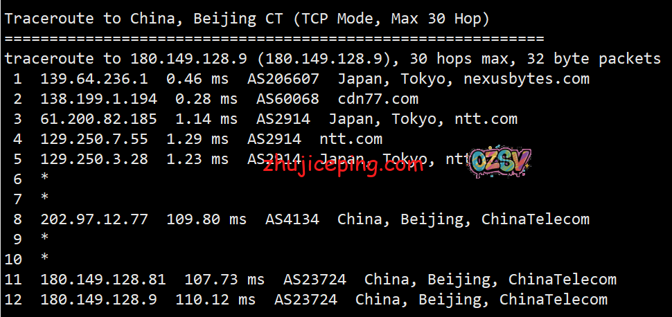电信去程,骨干网对接NTT到日本:
