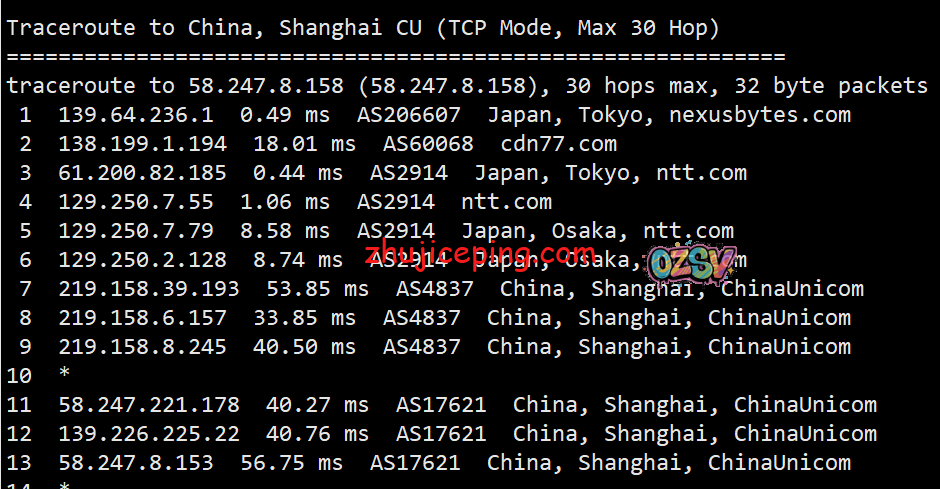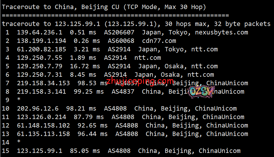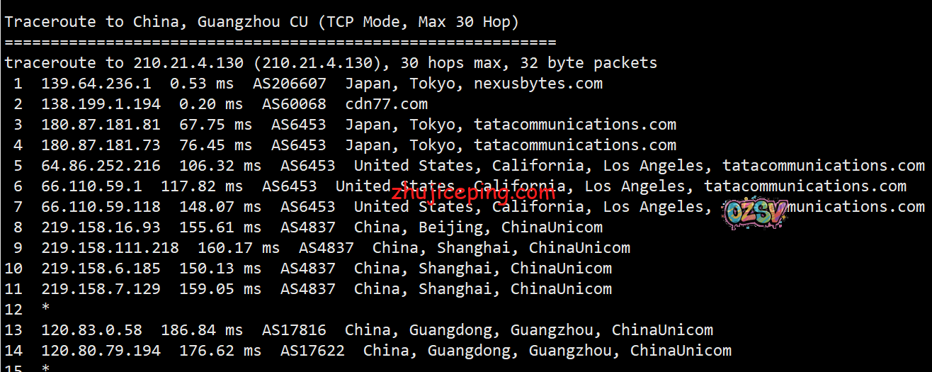 回程,到国内联通:北京和上海方向,日本NTT转联通AS4837回国;广州方向,走TATA到美国洛杉矶后再AS4837回来