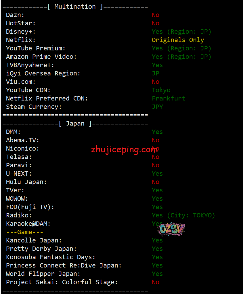 流媒体解锁测试结果如下: