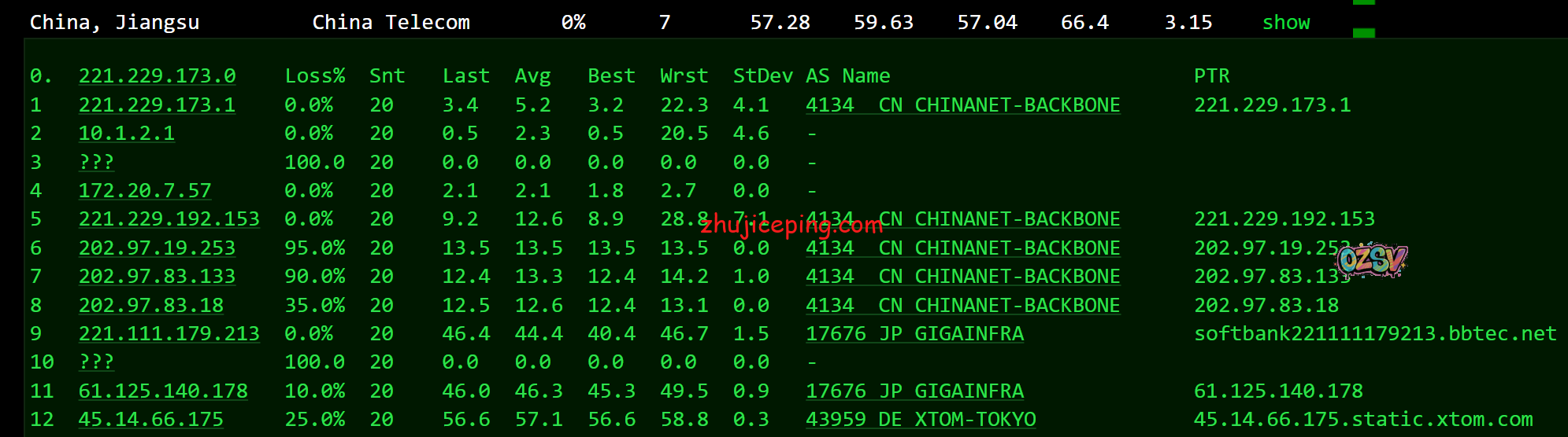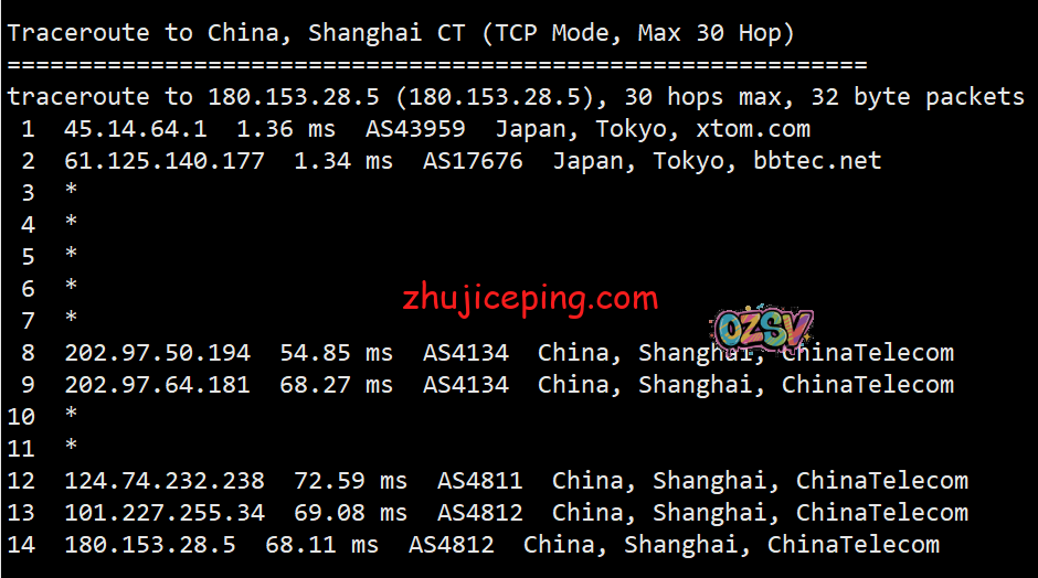 回程,到国内电信:暂时只能看到从机房出来经过软银,后面能看到的就是到了国内了