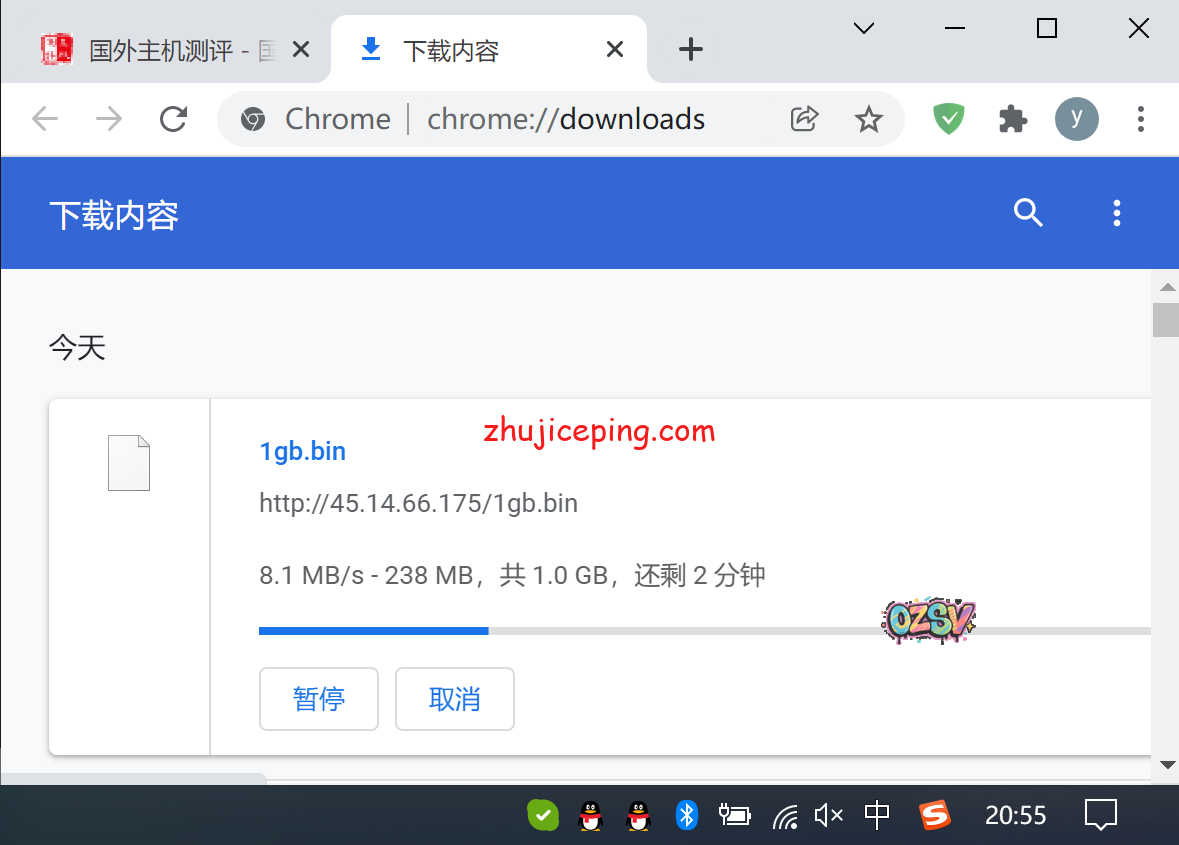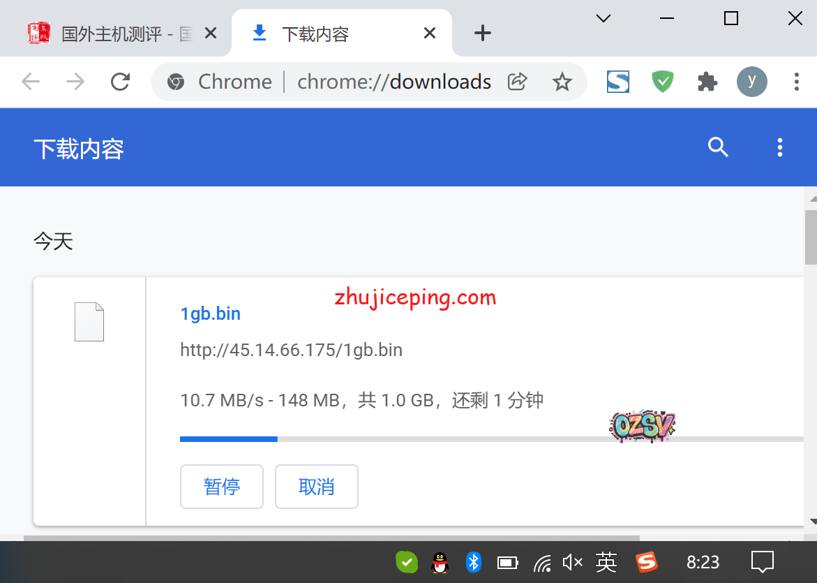 存放在VPS上的文件,广州电信直接用Chrome浏览器下载,下载速度在白天几乎可以跑满,大致在10.7MB/S: