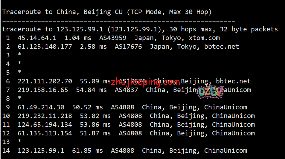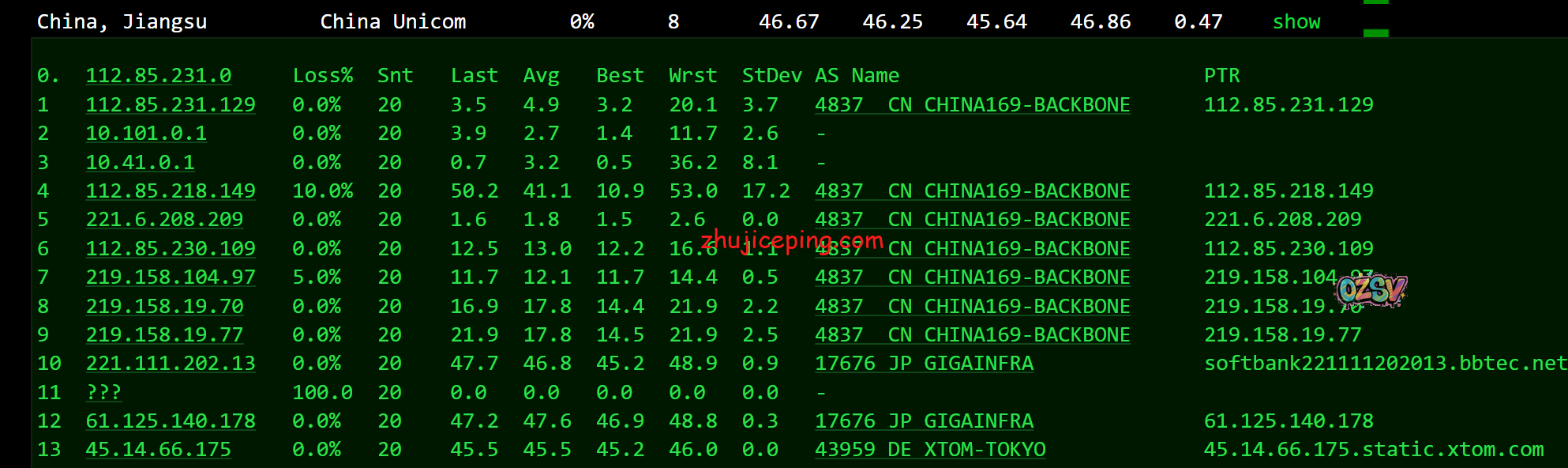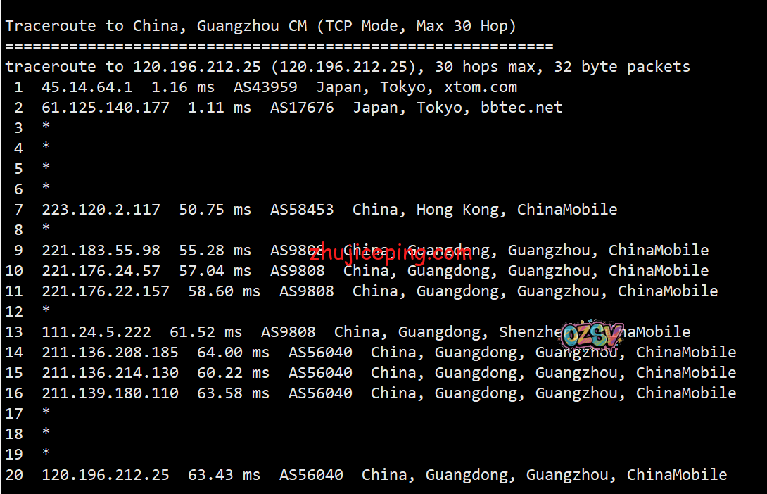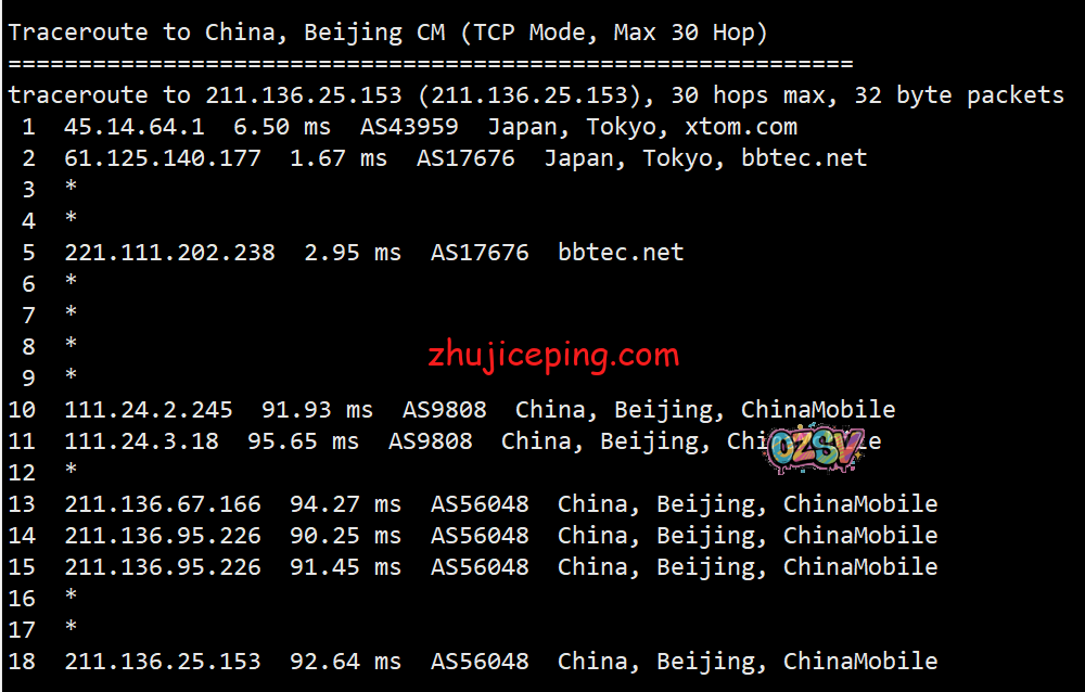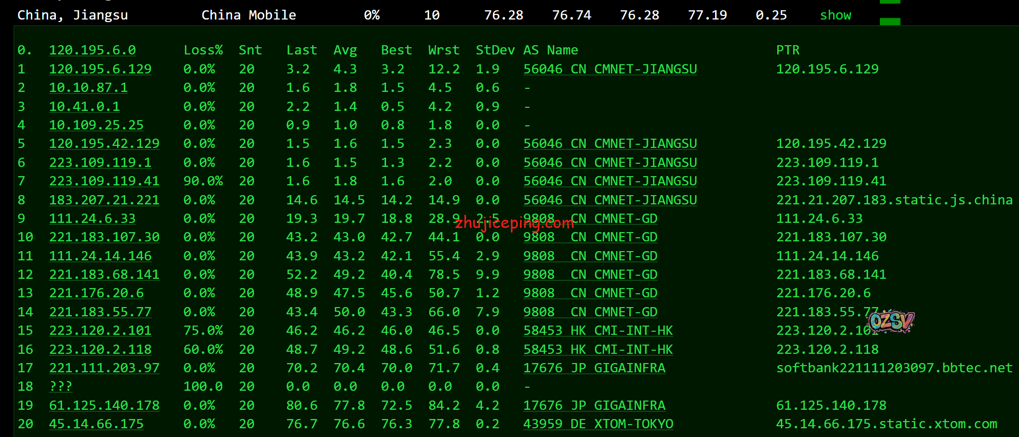 大致总结下:去程,基本上都是软银;回程,电信和联通都是软银,移动不是直连就是软银对接移动节点回来。整体来说网络优化还是很不错的,根据个人经验来判断,软银虽然是比较不错的网络但是国内依旧还是联通使用效果最好,电信和移动的效果差一点,这里说的是相对联通来说!