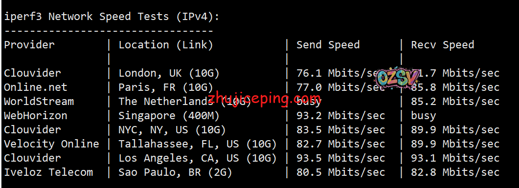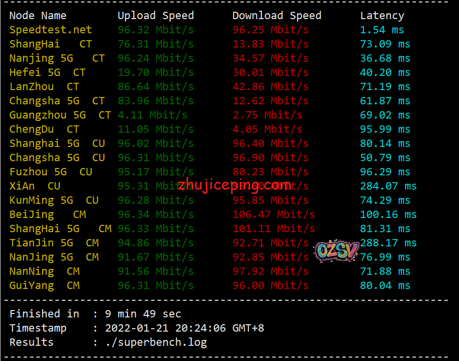 100Mbps带宽,我们想知道的是在国内三网环境下能跑到多少,这个是大家最为关心的! speedtest.net的国内三网节点测试正好可以得出一点儿参考数据,大致如下: