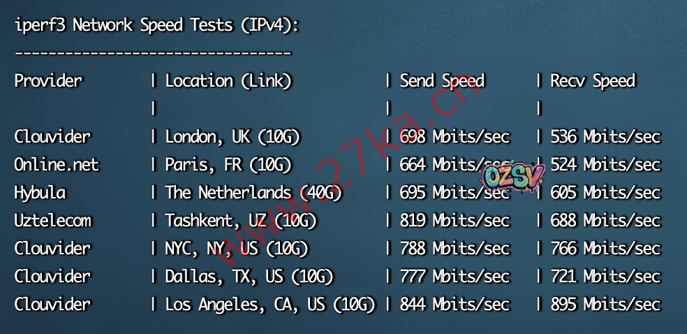 iperf3 针对欧美的节点的数据测试: