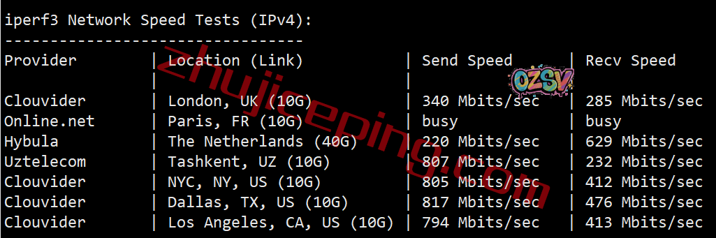 iperf3跑几个欧美的知名节点,大致看看吧: