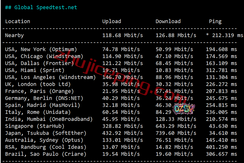 speedtest.net在国内的三网不同节点跑一下上行和下行带宽,看看能冲到多少?从测试的数据来看至少是3Gbps,这么说不过分吧?