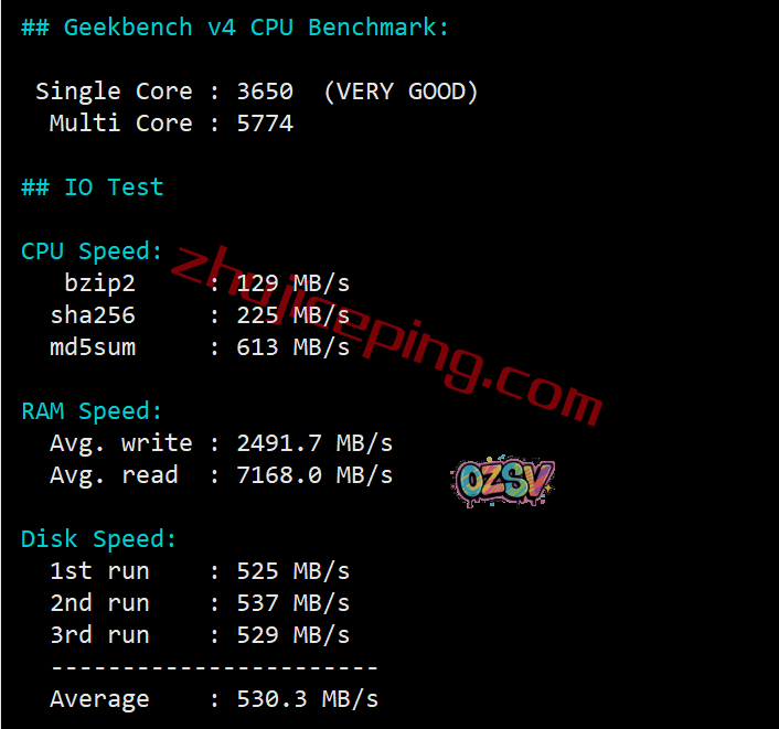 CPU型号未知,主频是2.9GHz,zenlayer自己的IP广播过去的,当前I/O大致402MB/S: