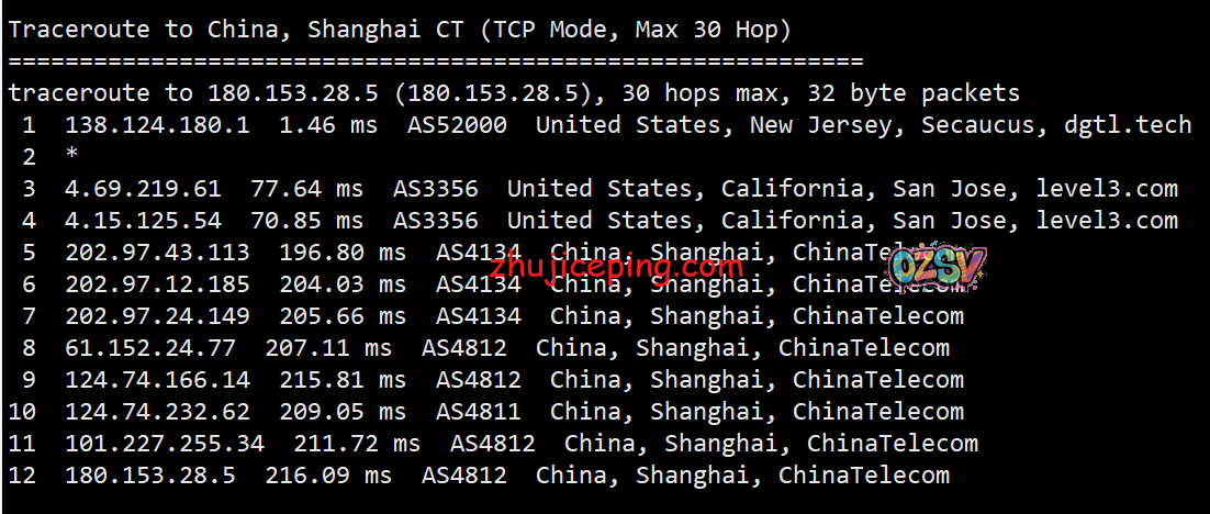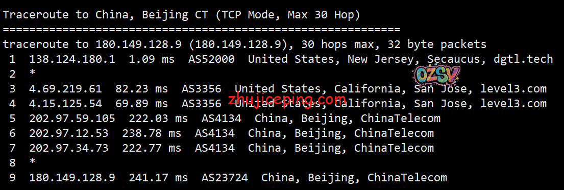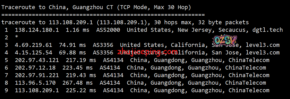回程,到国内电信:统一从圣何塞level3线路出来对接电信骨干