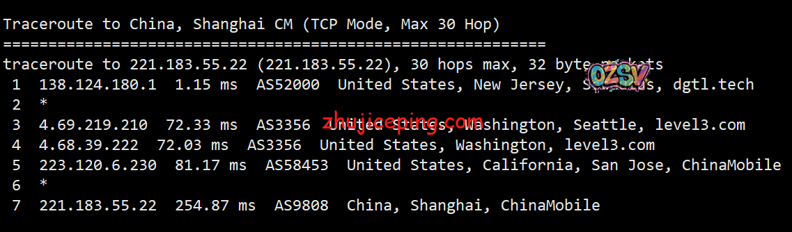 回程,基本上是level3或者移动的直连;相对来说在没有高端的网络线路加入的情况下这种还算可以的。服务器性能当前是马马虎虎的,不过由于IP能解锁一点流媒体资源,又不限制流量,或许性价比也还是马马虎虎的吧,毕竟价格也不贵!