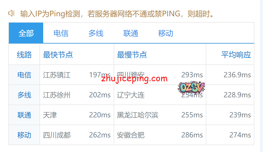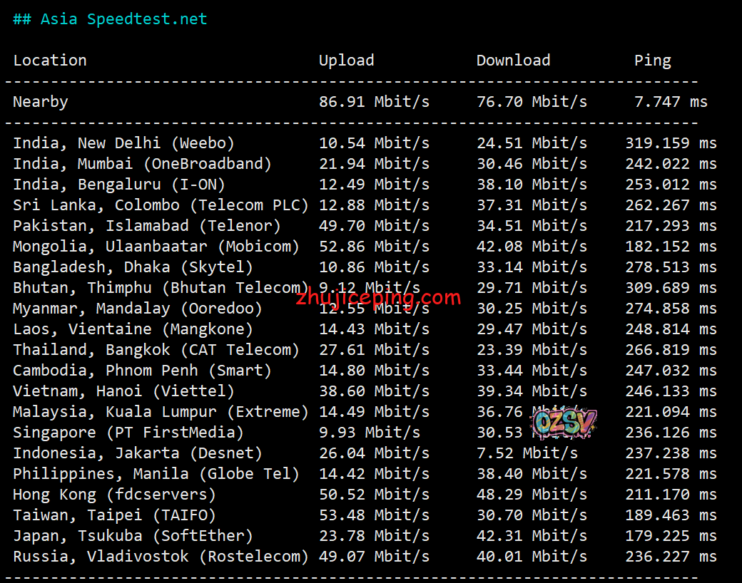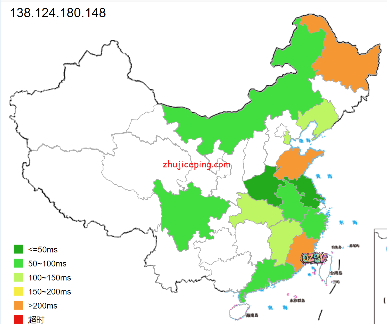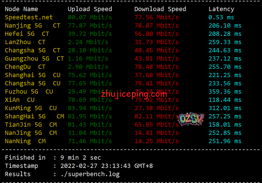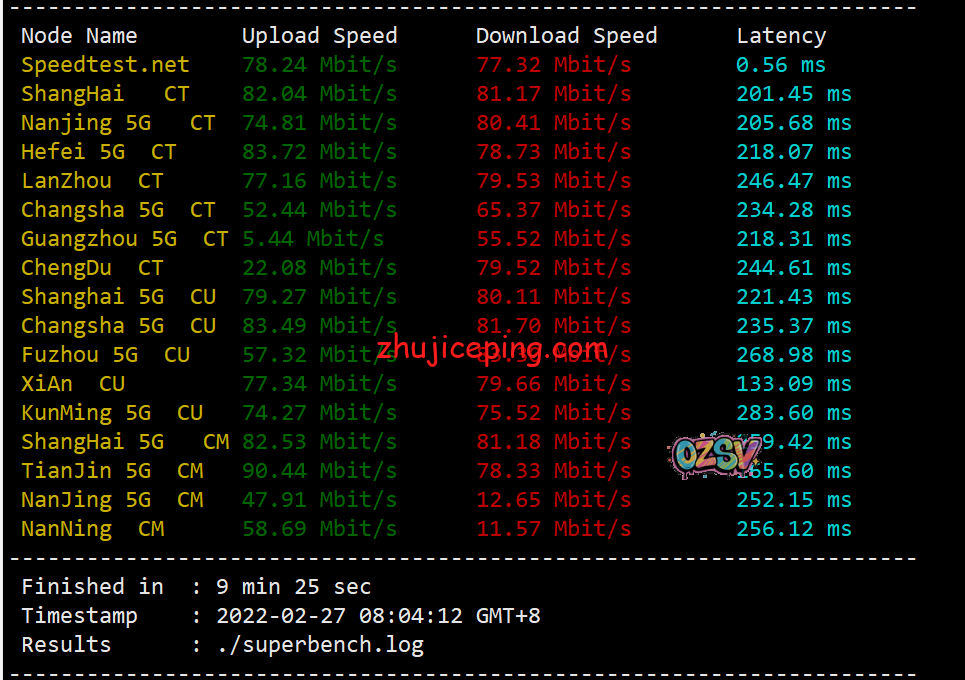 通过speedtest.net在国内的三网节点来测试上下行能跑到多少(官方网站上面说过,配置越大,带宽和流量越大,貌似这个最低配置就是只给了100Mbps带宽),大致数据如下: