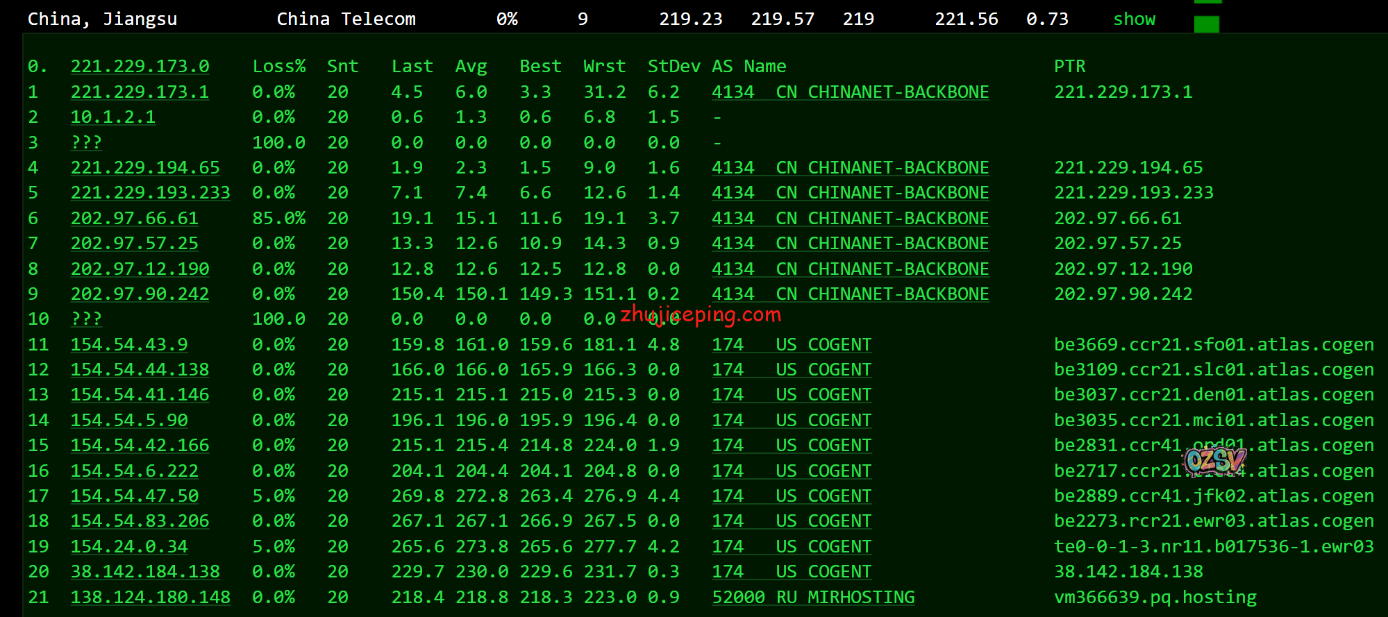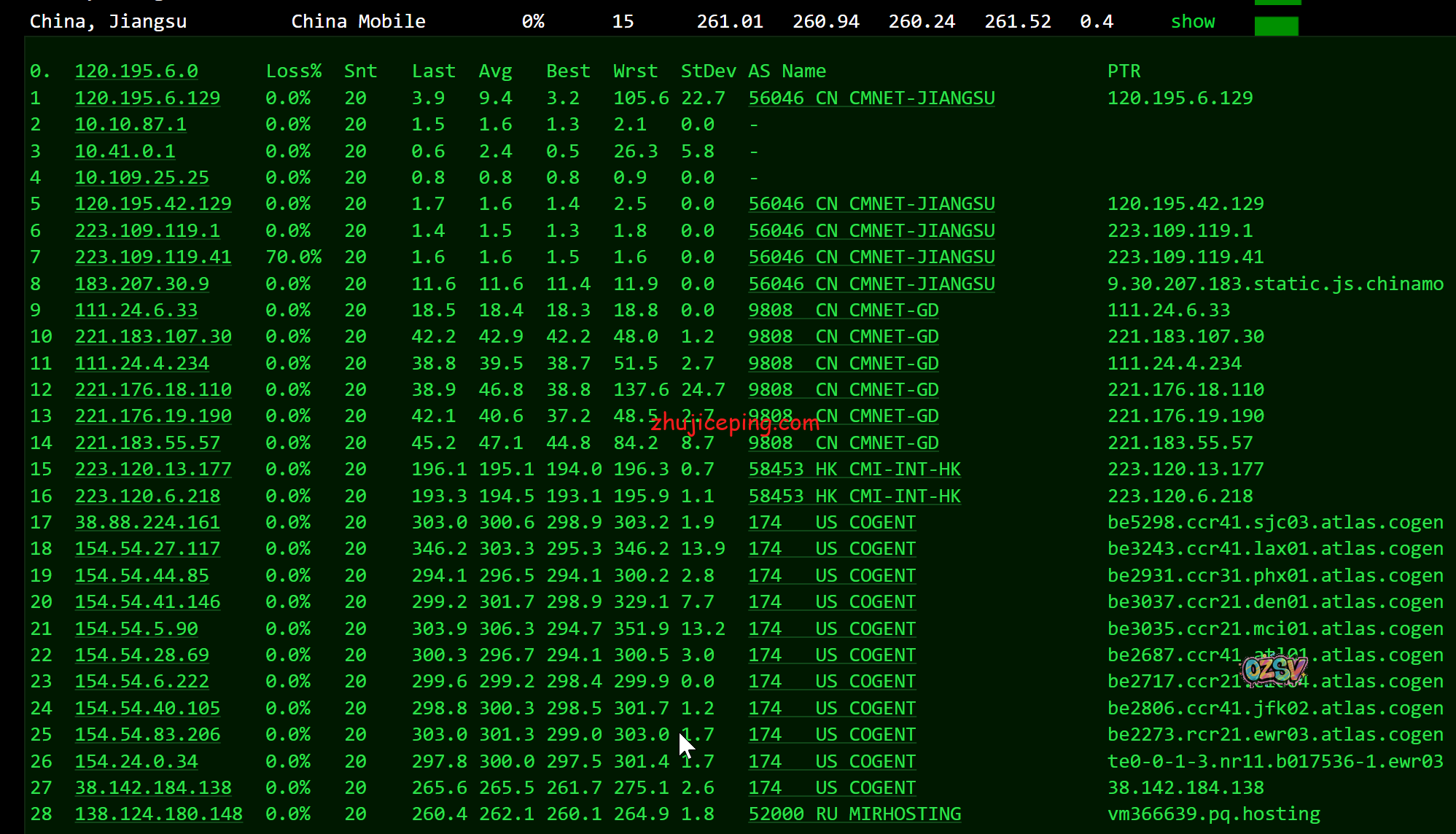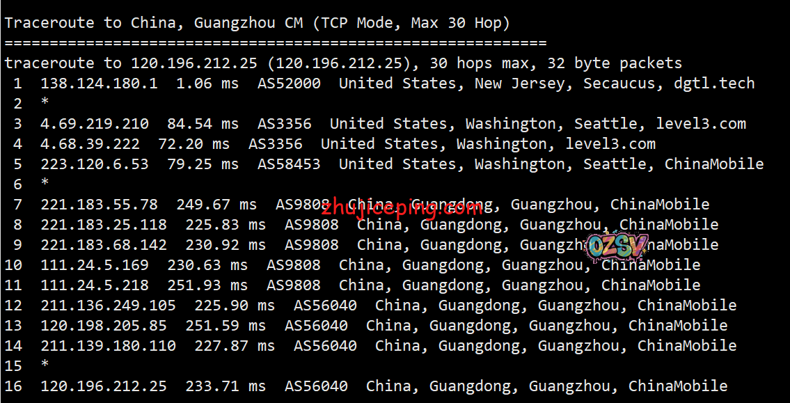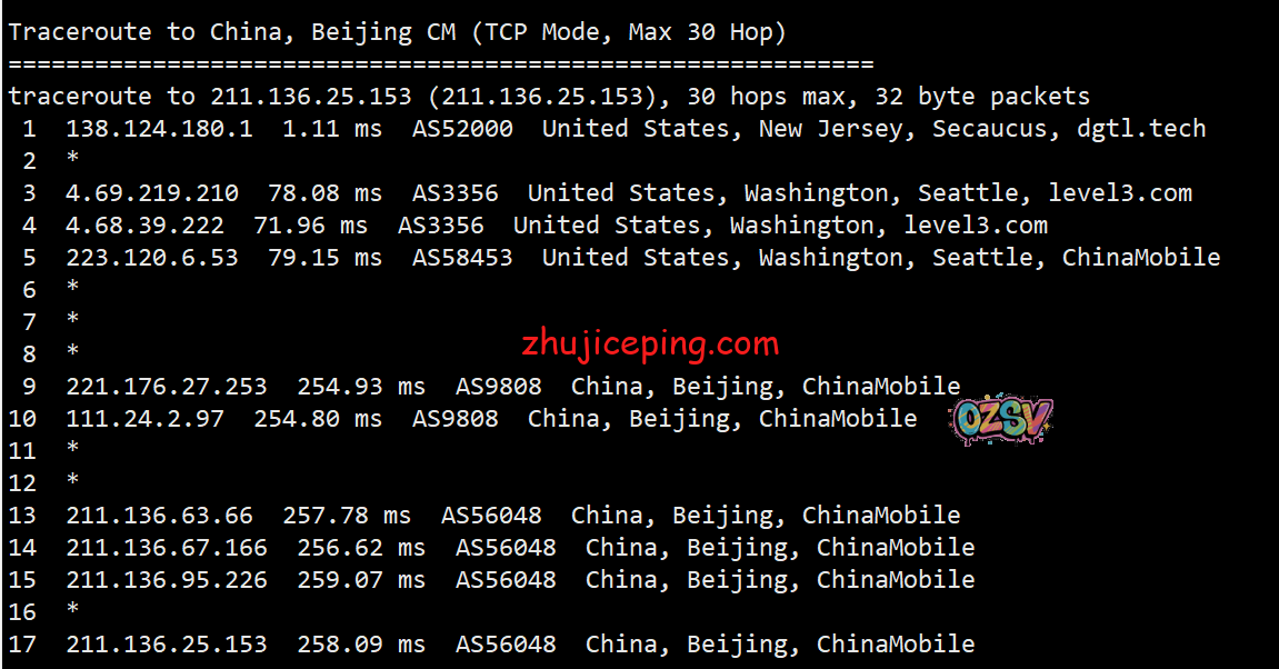 回程,到国内移动:从圣何塞或者西雅图的中国移动节点直连回国